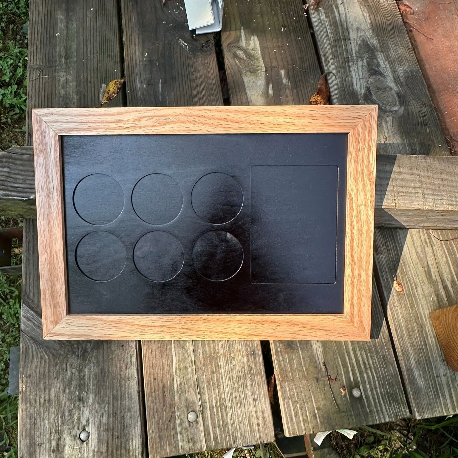 Comes ready to hang on the wall with a saw tooth hanger. Frame is Handmade from Solid Red Oak and finished with Furniture Grade Lacquer.