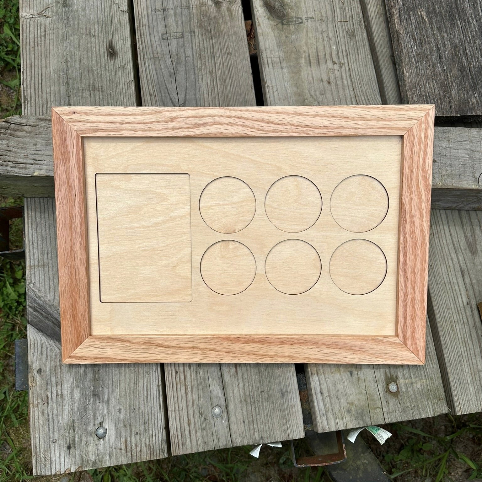 11x17 version featuring a cut out for a 5x7 photograph and up to 6 3" Medals. The frame will come setup to be displayed Landscape, if you need Portrait orientation please contact me.