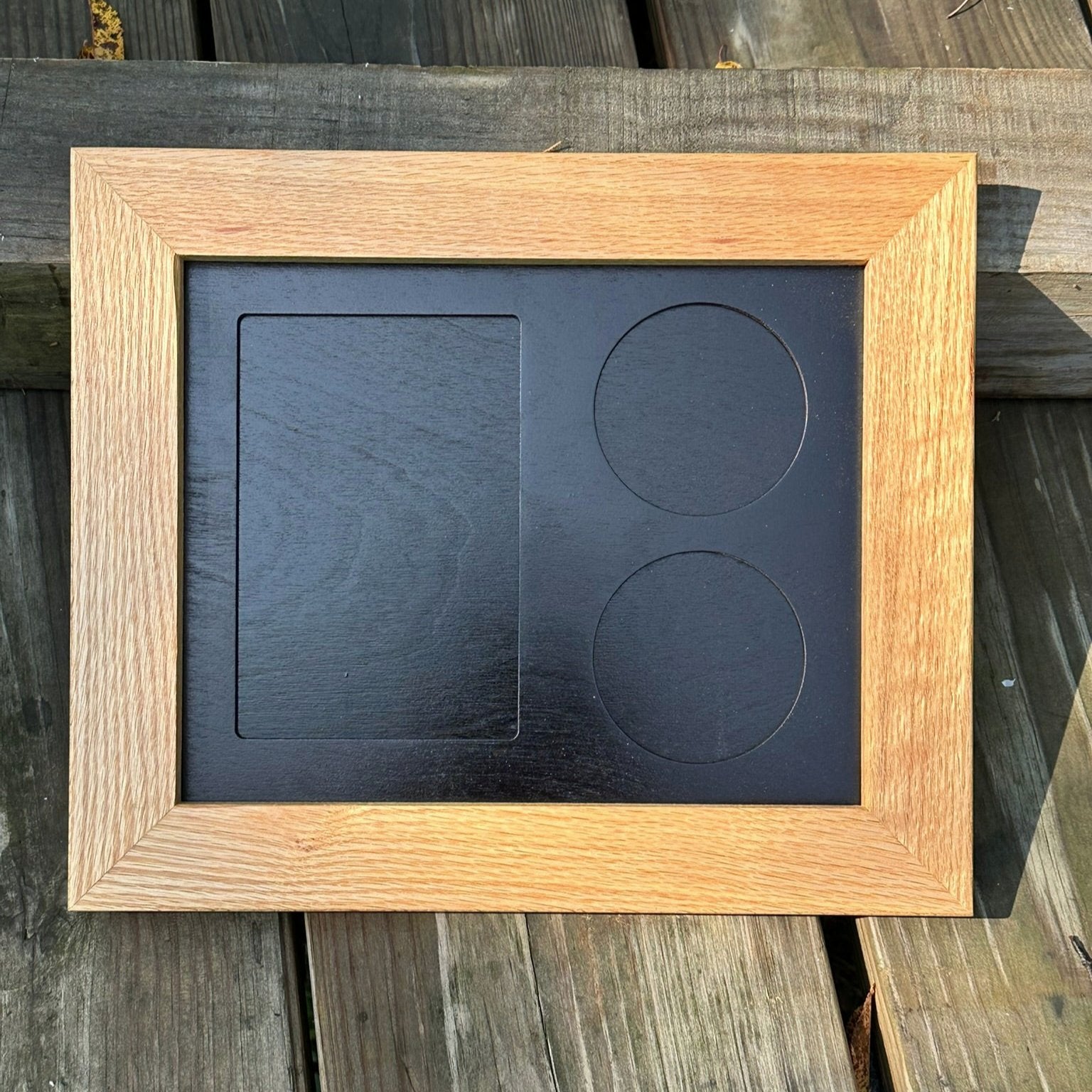 8x10 version featuring a cut out for a 5x7 photograph and up to 2 3" Medals. The frame will come setup to be displayed Landscape, if you need Portrait orientation please contact me.