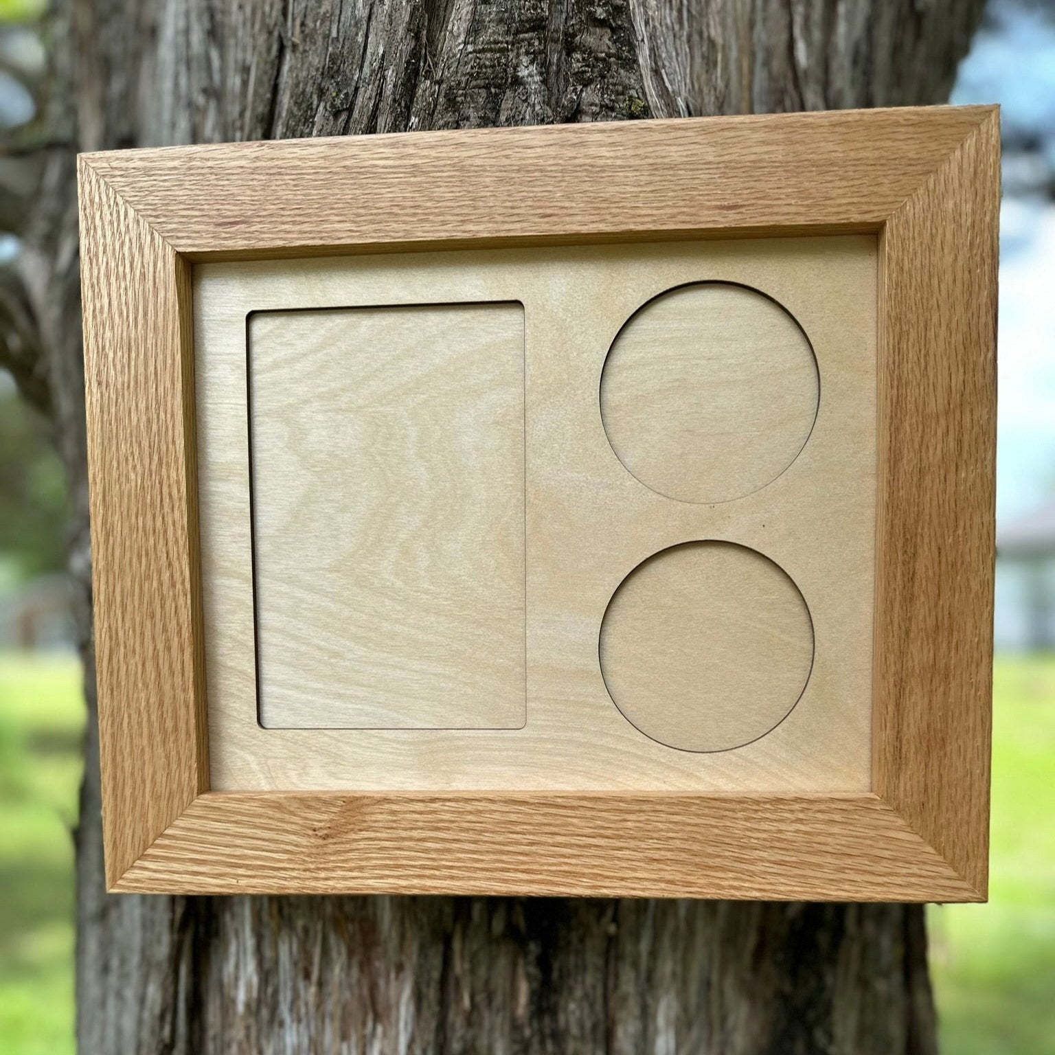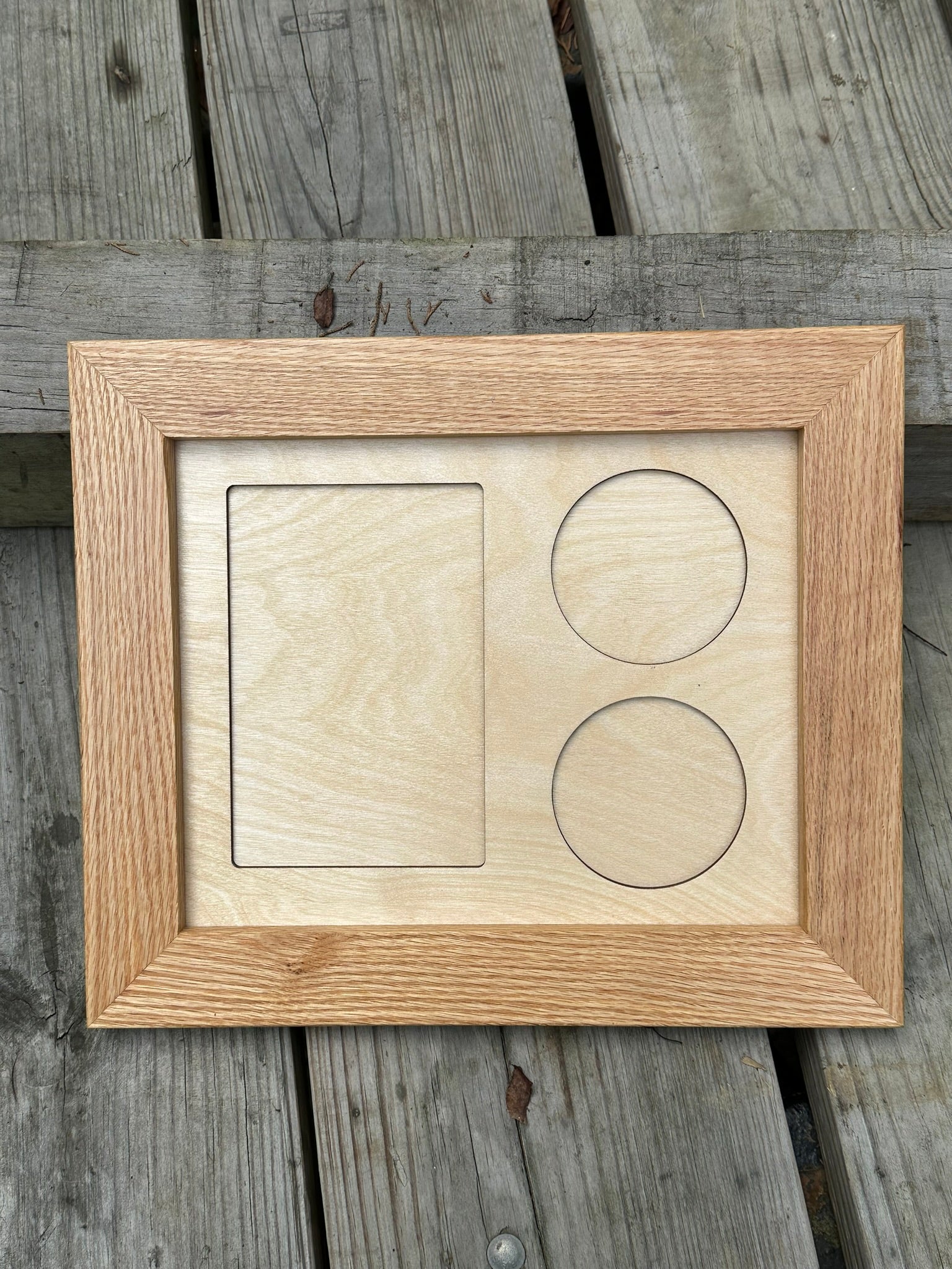8x10 version featuring a cut out for a 5x7 photograph and up to 2 3" Medals. The frame will come setup to be displayed Landscape, if you need Portrait orientation please contact me.