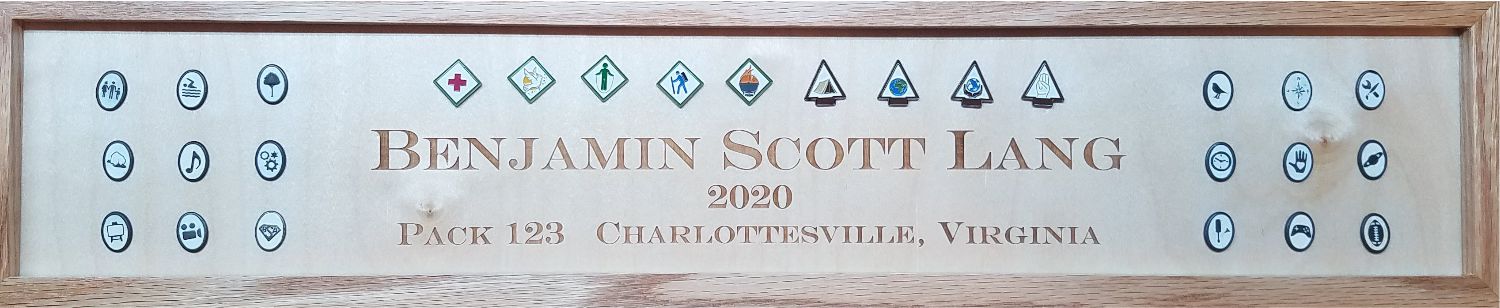 Celebrate each milestone of your Scout's journey with our beautifully handcrafted Adventure Pin Frame. This custom plaque is designed specifically to display your Scout's Adventure Pins and is an ideal way to commemorate their hard-earned achievements. The sturdy oak frame, known for its durability and classic elegance, ensures that this display piece will be a cherished memento for years to come.