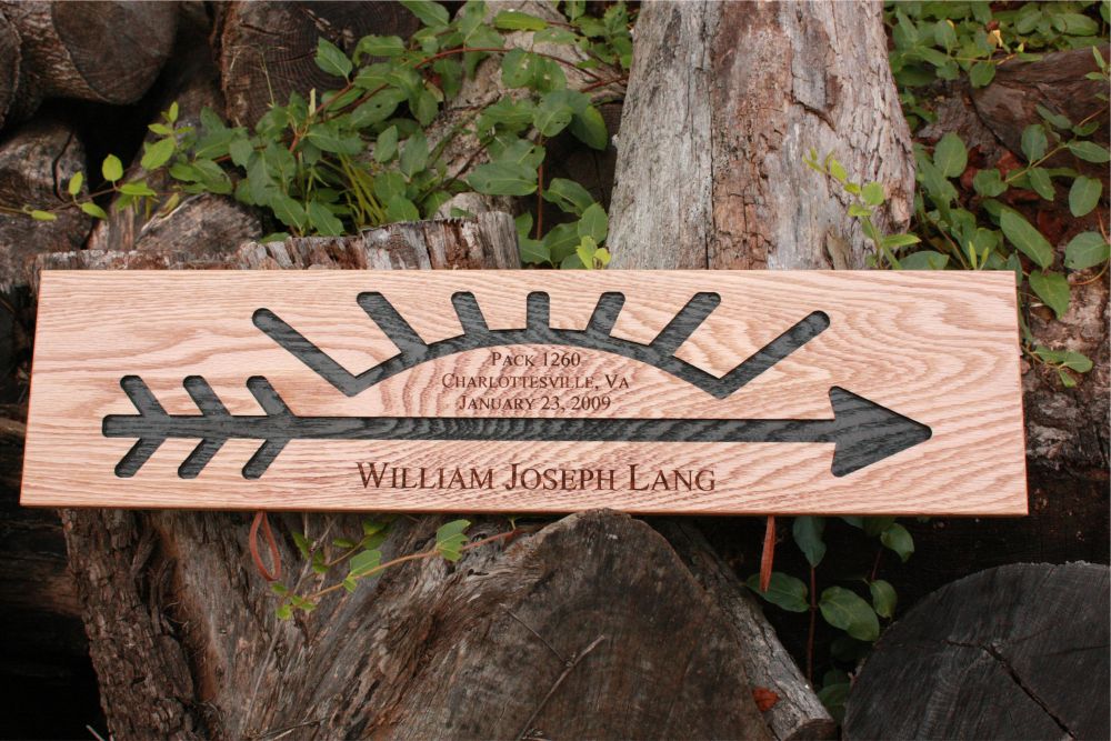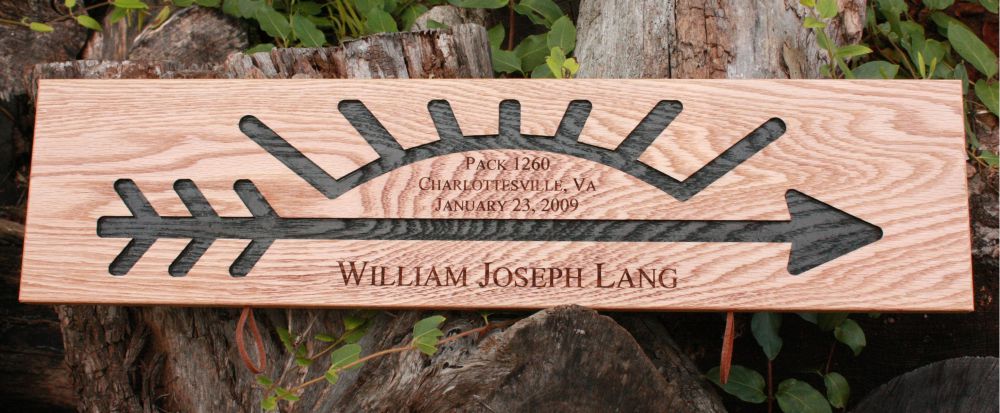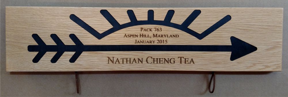 Celebrate an important milestone with our exquisitely crafted Arrow of Light Plaque featuring Custom Engraving and Black Inlays. This meticulously designed plaque is the perfect memento for recognizing the hard-earned achievements of Rising Boy Scouts. Made from premium quality wood and finished with black inlays and furniture grade lacquer, each plaque is a testament to our commitment to quality and craftsmanship. Customize it with the recipient’s name, date, and pack number to make it truly unique! Measuring approximately 23.5 inches x 5 5/8 inches, it’s the ideal size to honor an important achievement while being compact enough to display proudly in any home or scout hall.