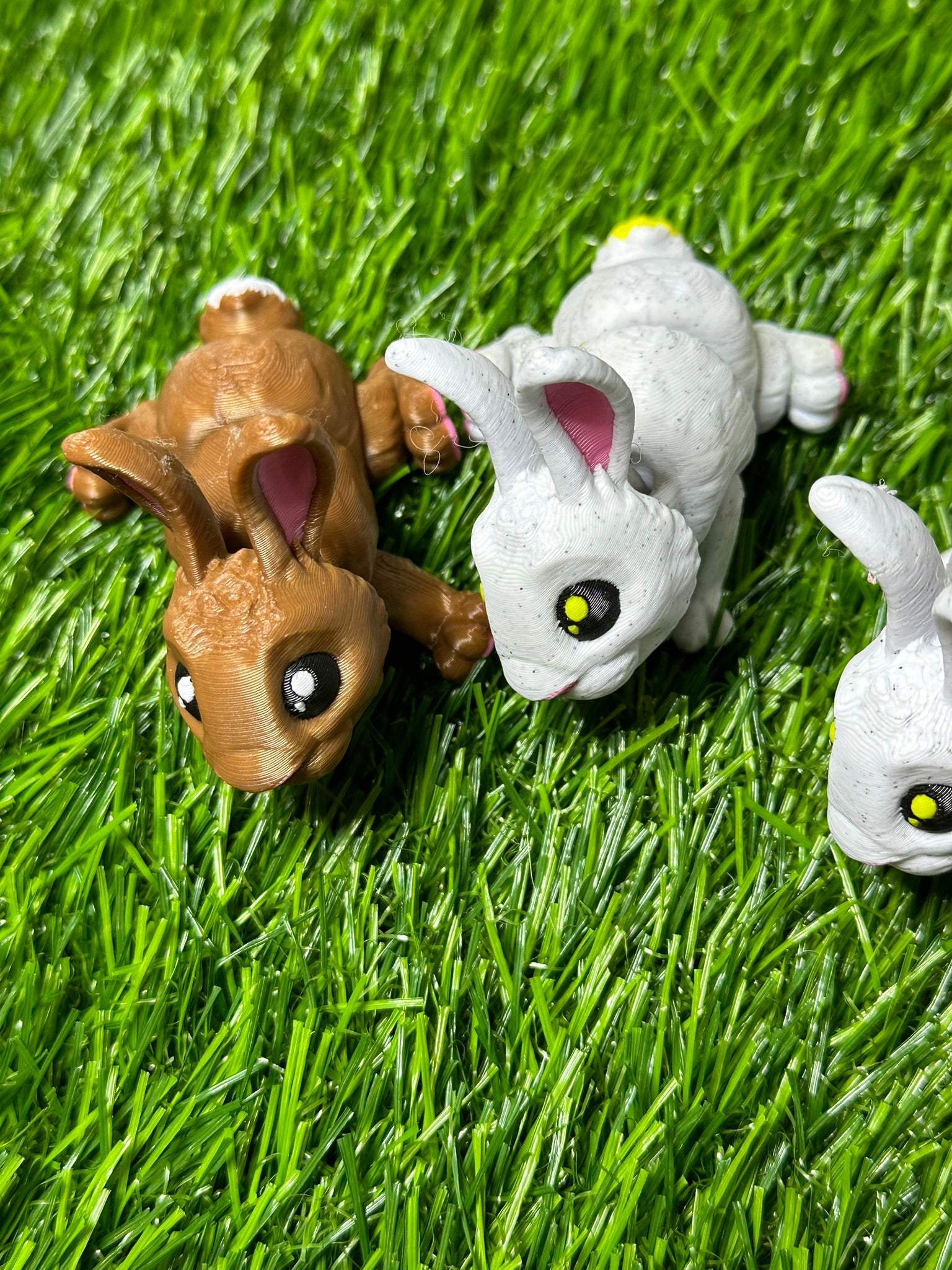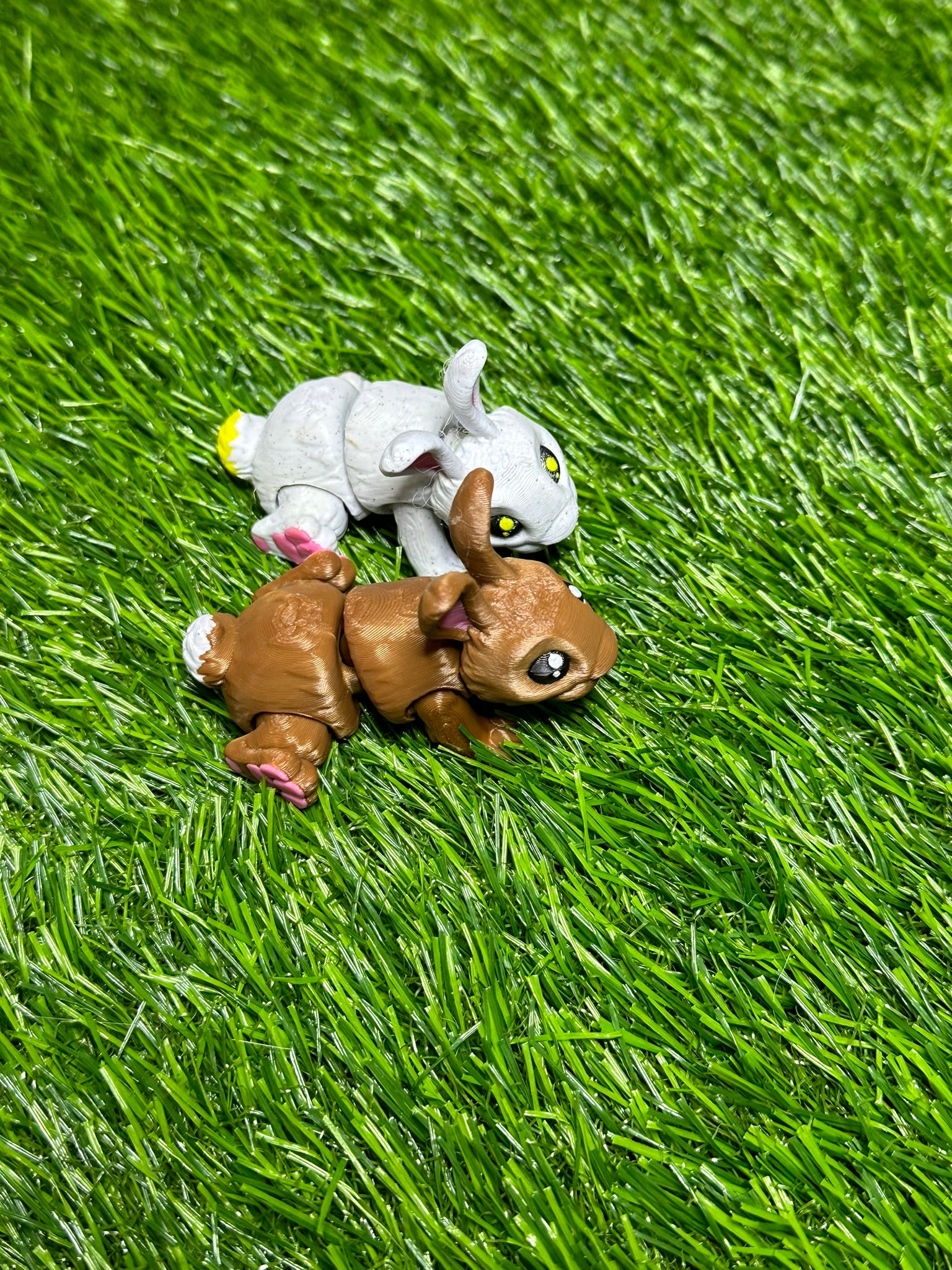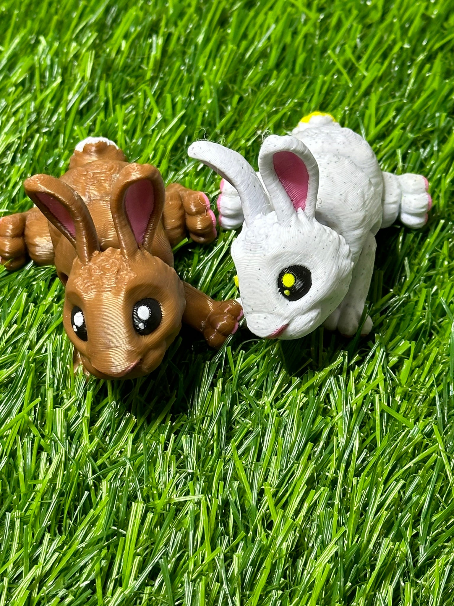 Articulating Bunny Fidget Animal, a charming creation meticulously crafted through cutting-edge 3D printing technology right here in Virginia. Standing at a delightful 3 inches long, this fidget toy is not just a playful companion but a testament to precision and durability.