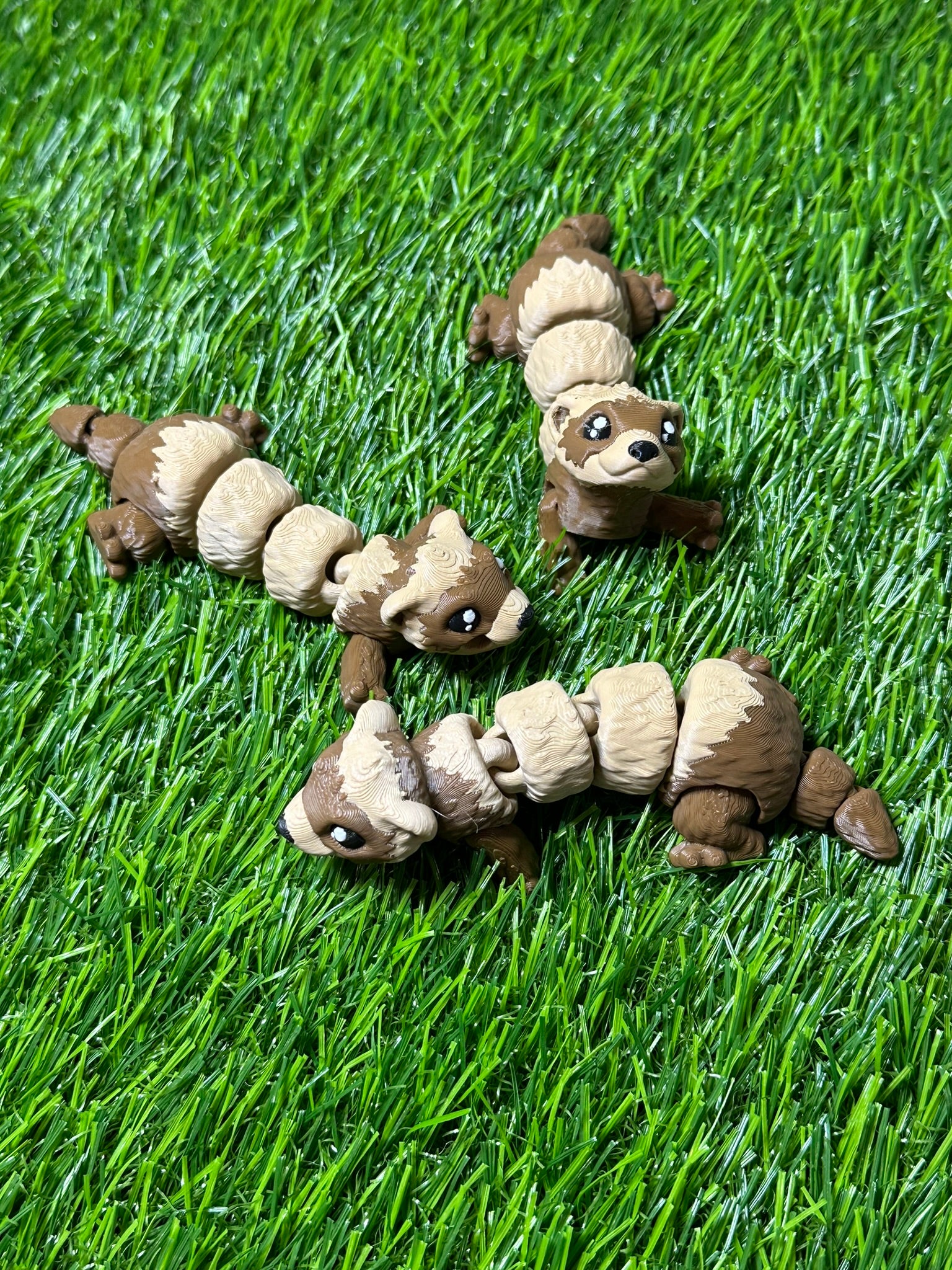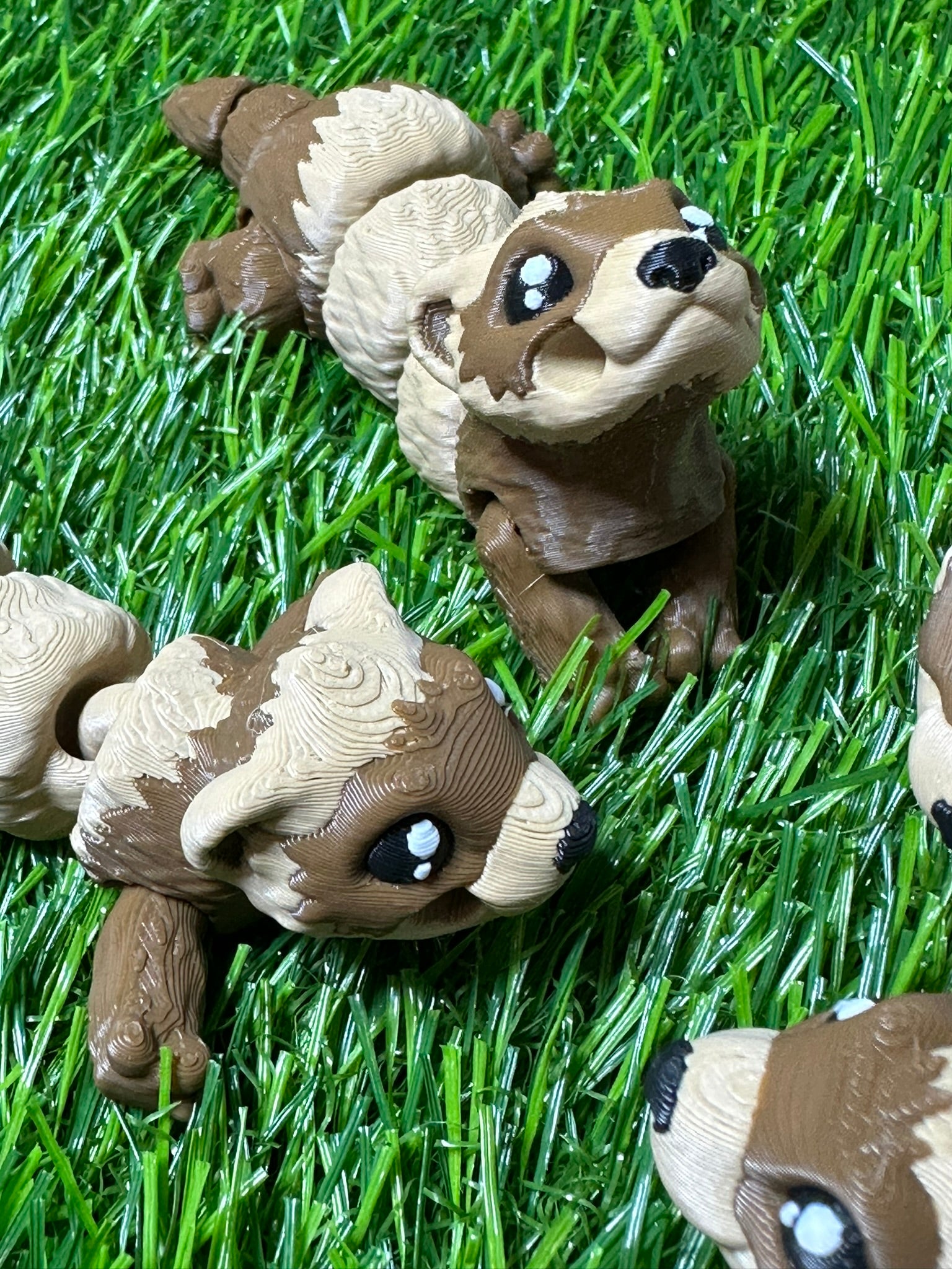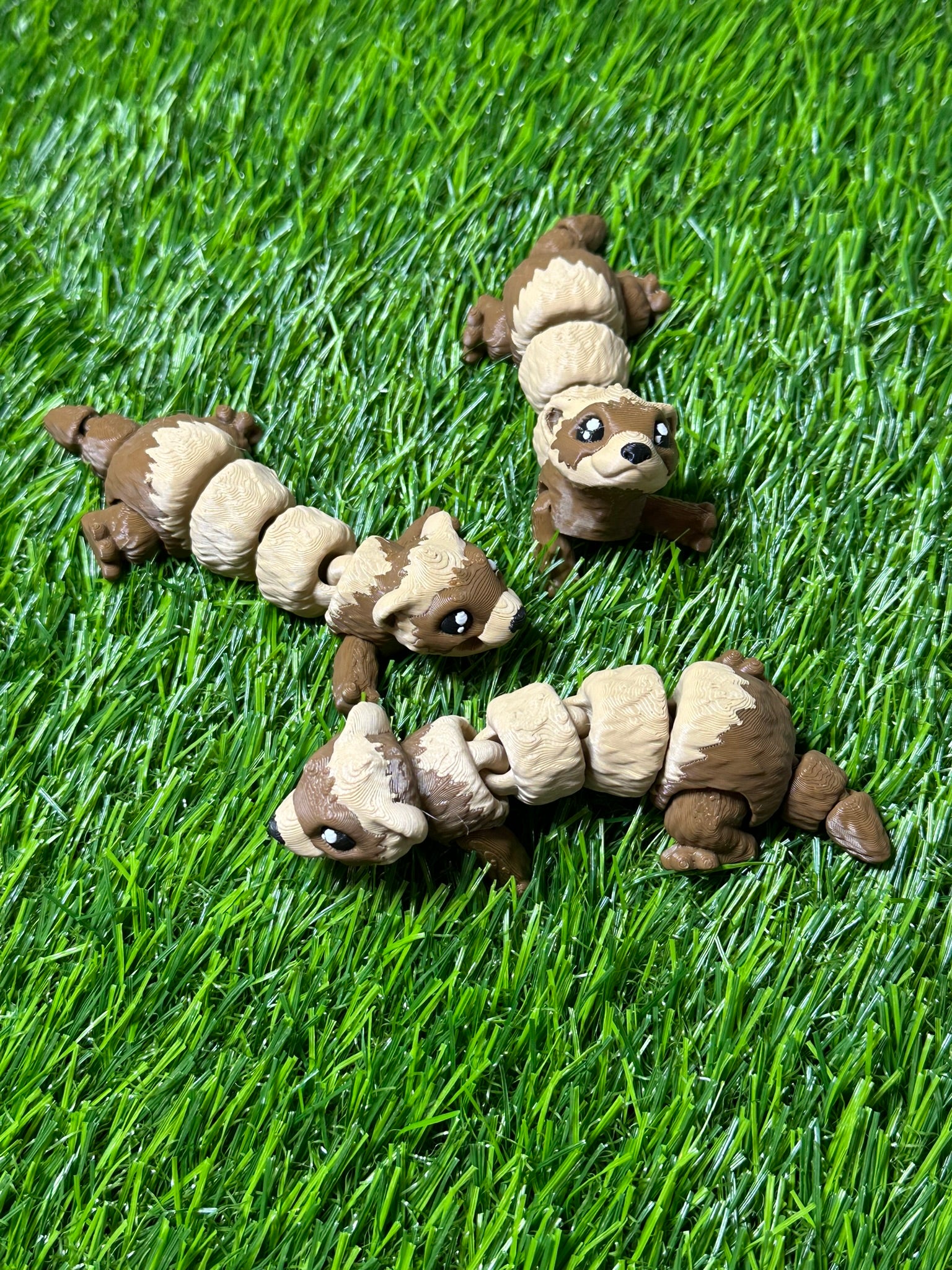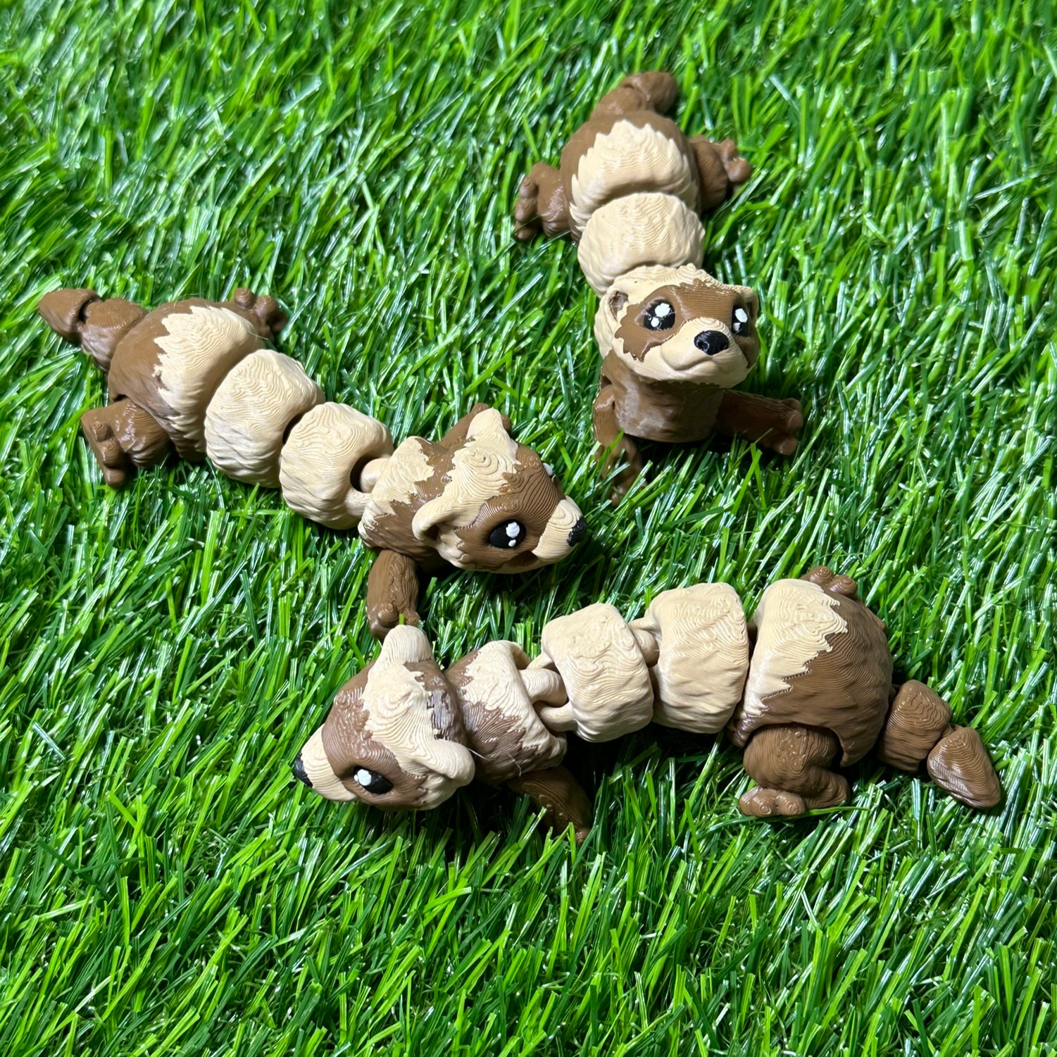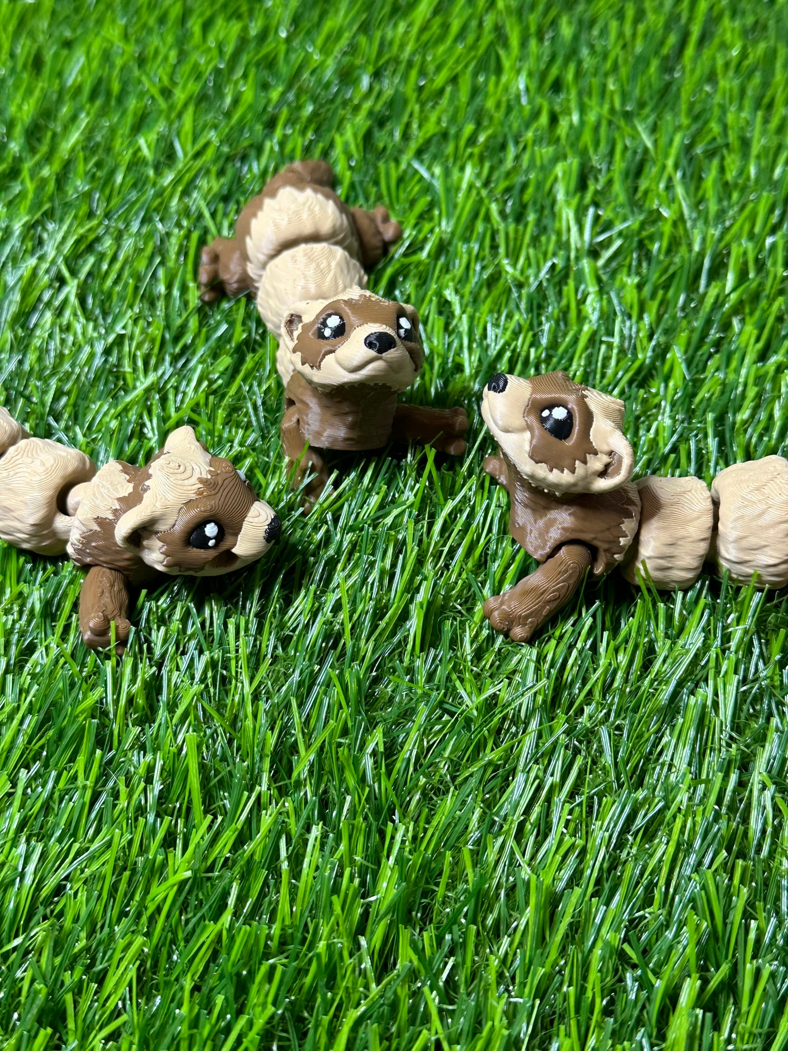 Articulating Ferret Fidget Animal, a charming creation meticulously crafted through cutting-edge 3D printing technology right here in Virginia. Measuring at a delightful 3.5 inches long, this fidget toy is not just a playful companion but a testament to precision and durability.