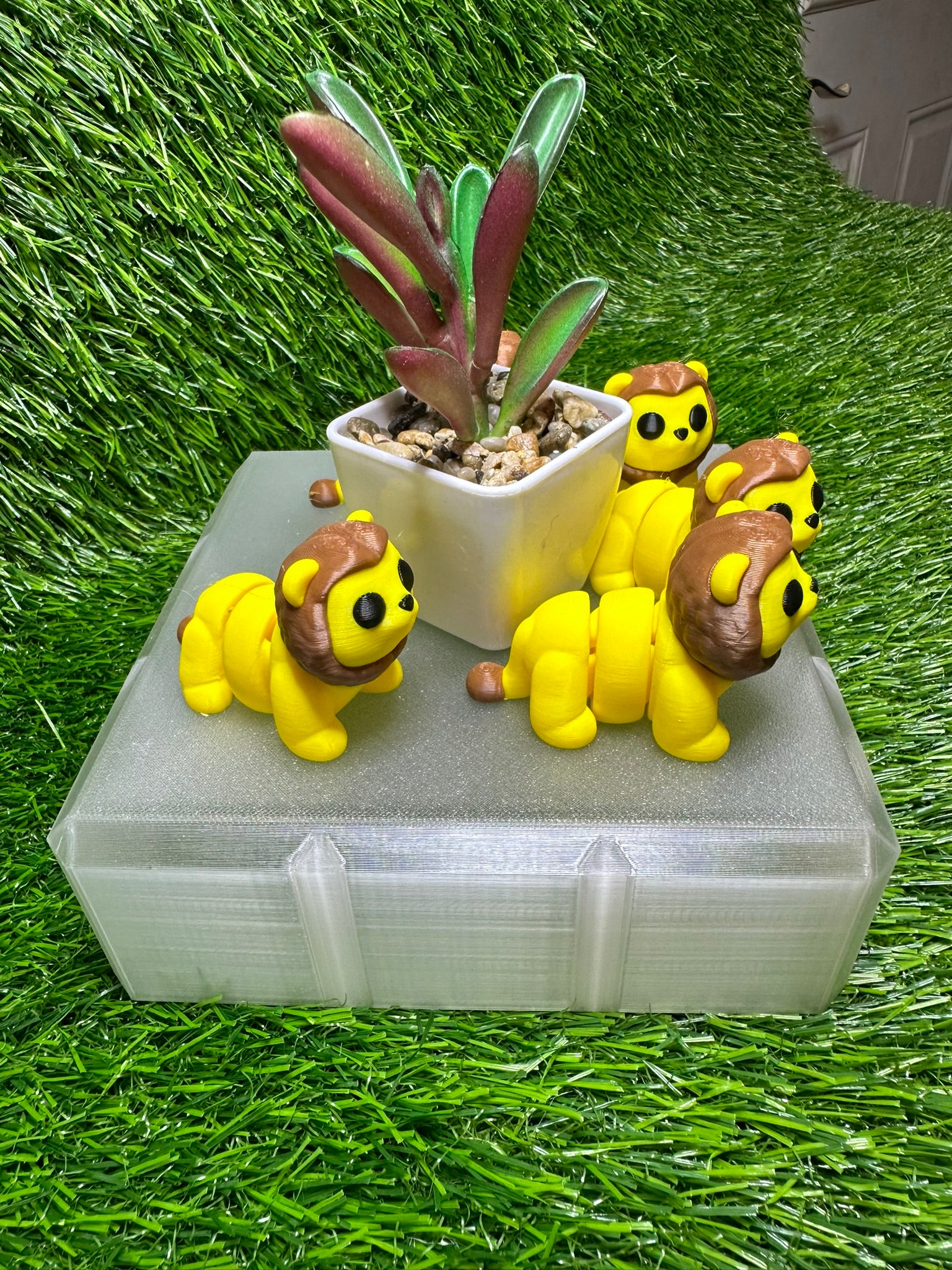 Articulating Lion Fidget Animal, a charming creation meticulously crafted through cutting-edge 3D printing technology right here in Virginia. Measuring at a delightful 3 inches long, this fidget toy is not just a playful companion but a testament to precision and durability.