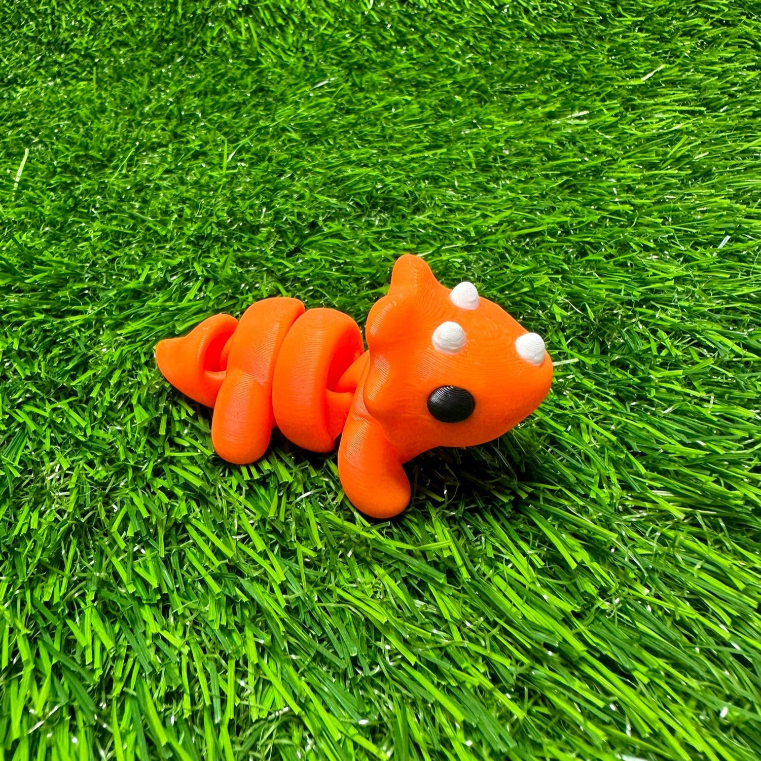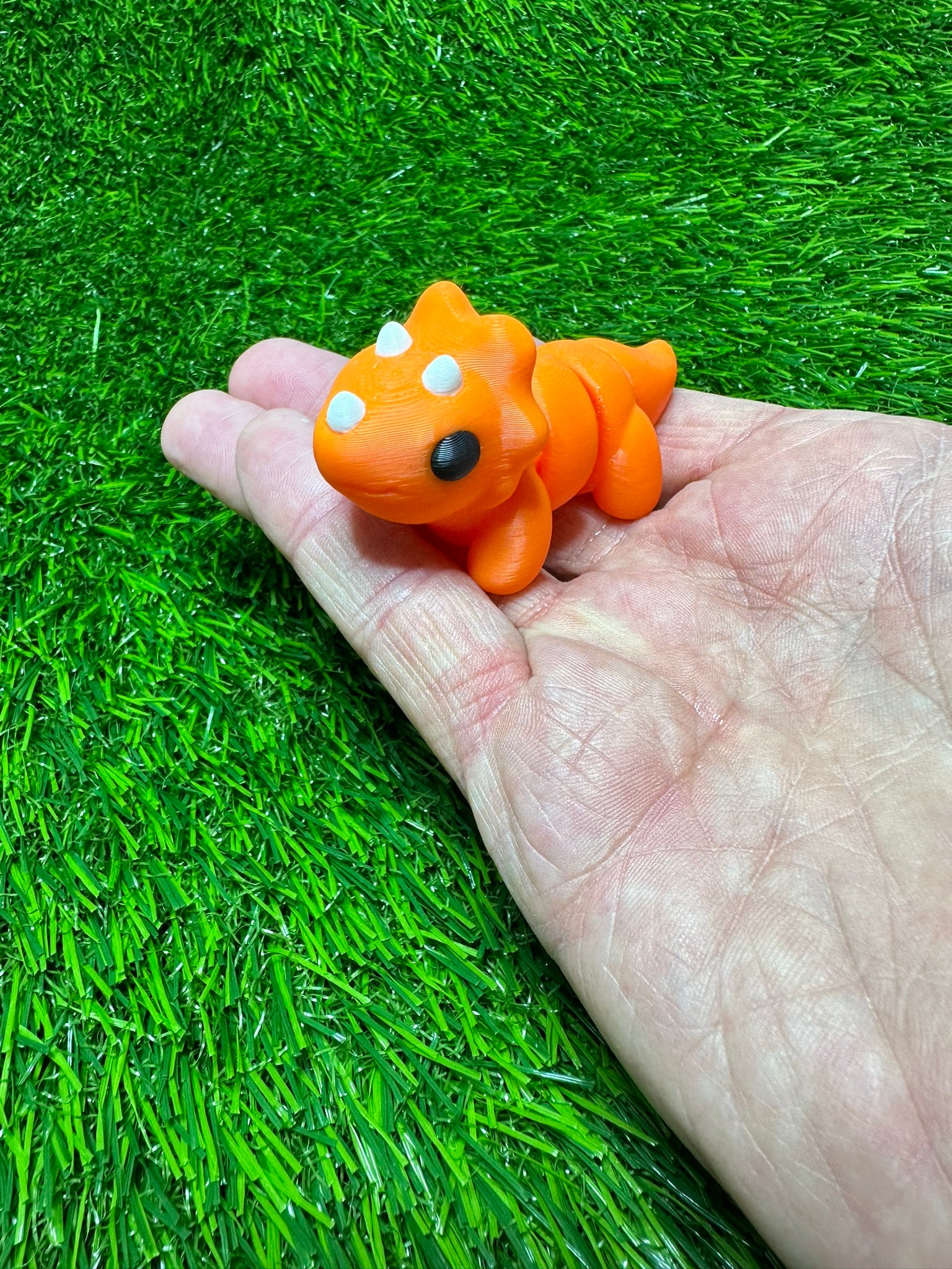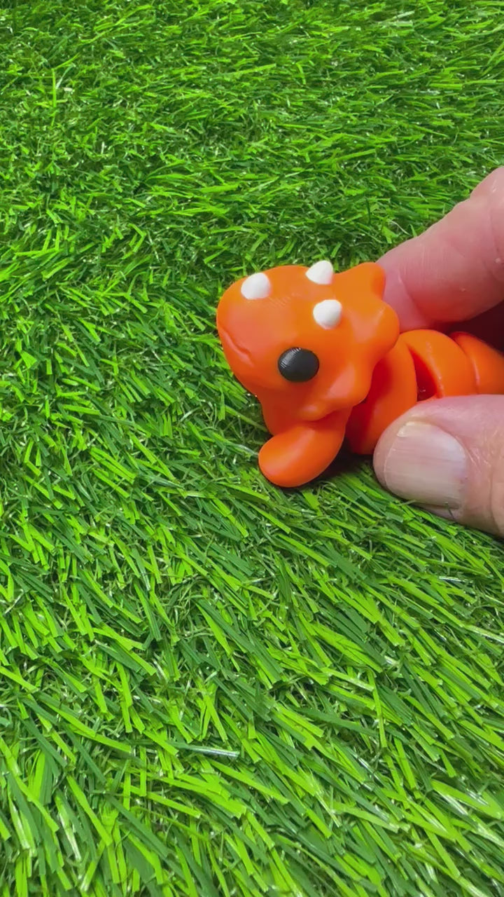Articulating Triceratops Dinosaur Fidget Animal, a charming creation meticulously crafted through cutting-edge 3D printing technology right here in Virginia. Measuring at a delightful 2.5 inches long and 1.5 inches tall, this fidget toy is not just a playful companion but a testament to precision and durability.