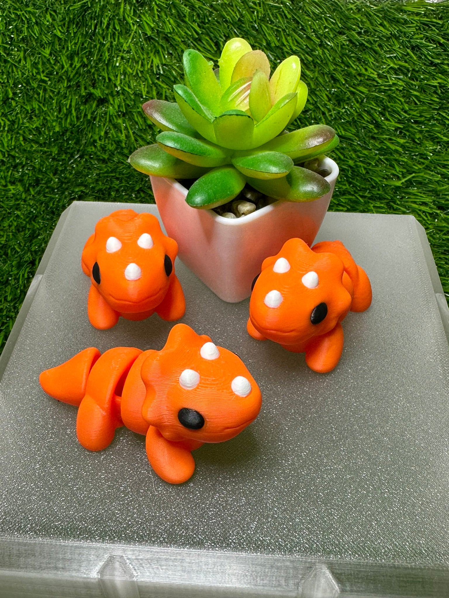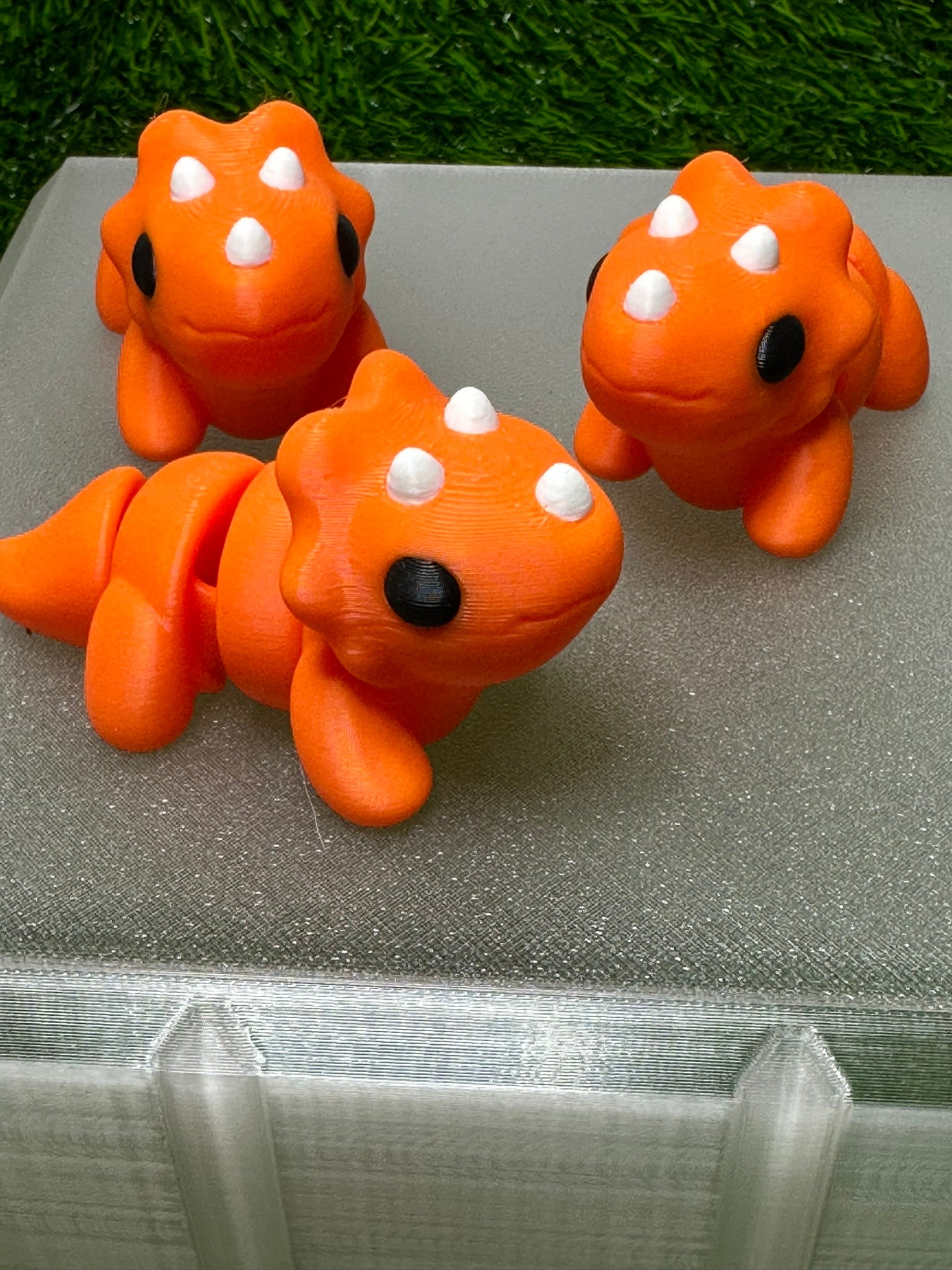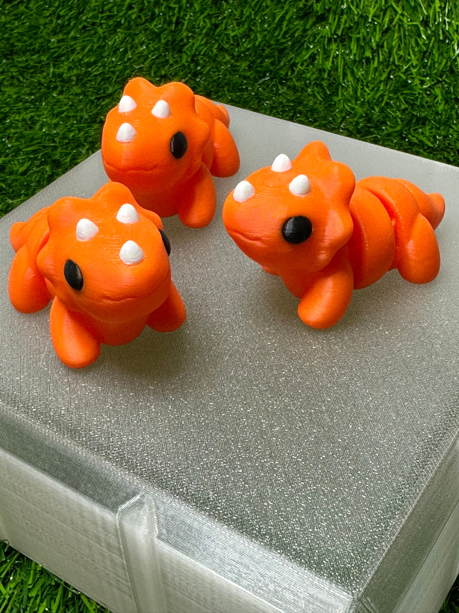 Articulating Triceratops Dinosaur Fidget Animal, a charming creation meticulously crafted through cutting-edge 3D printing technology right here in Virginia. Measuring at a delightful 2.5 inches long and 1.5 inches tall, this fidget toy is not just a playful companion but a testament to precision and durability.