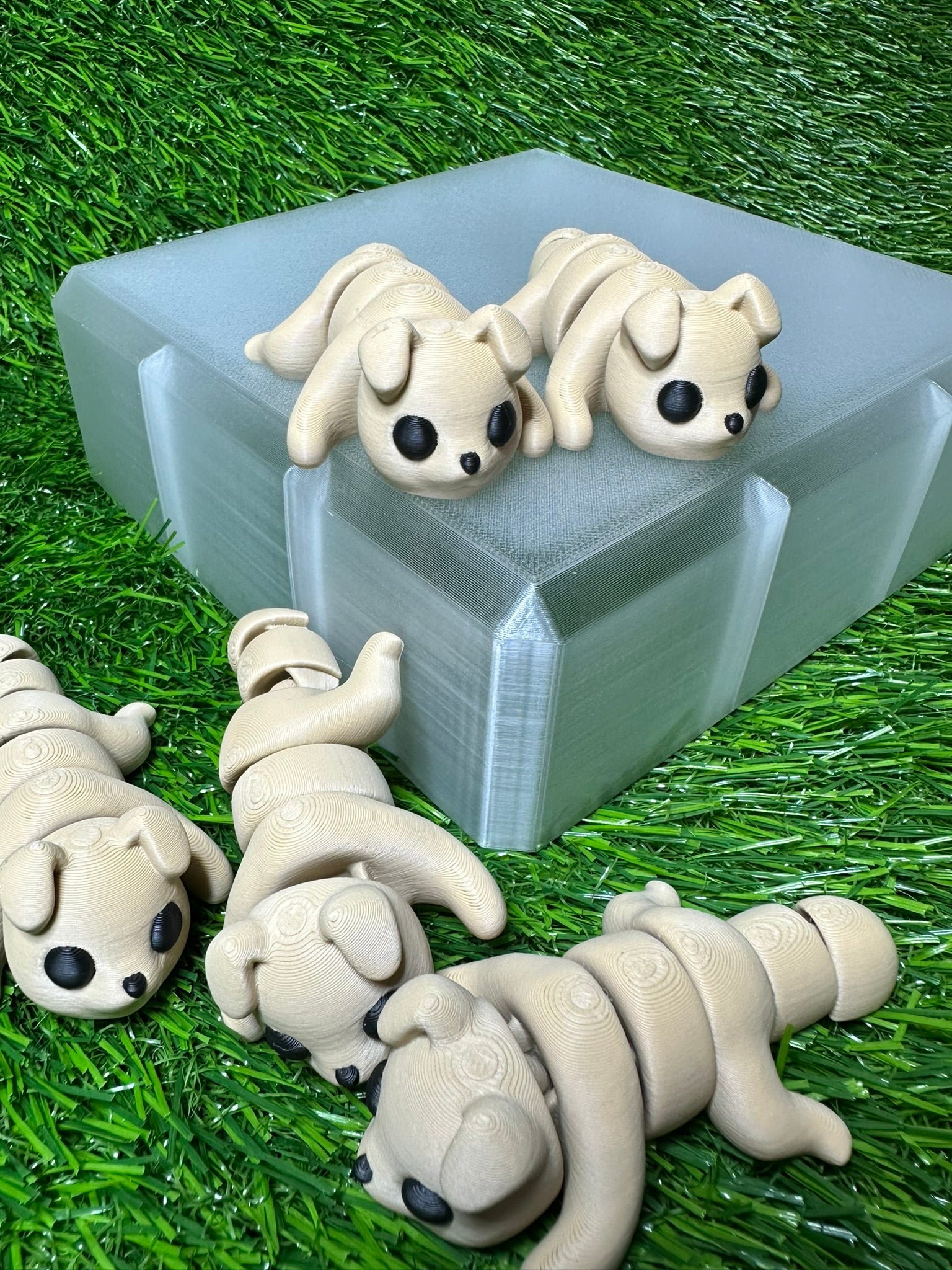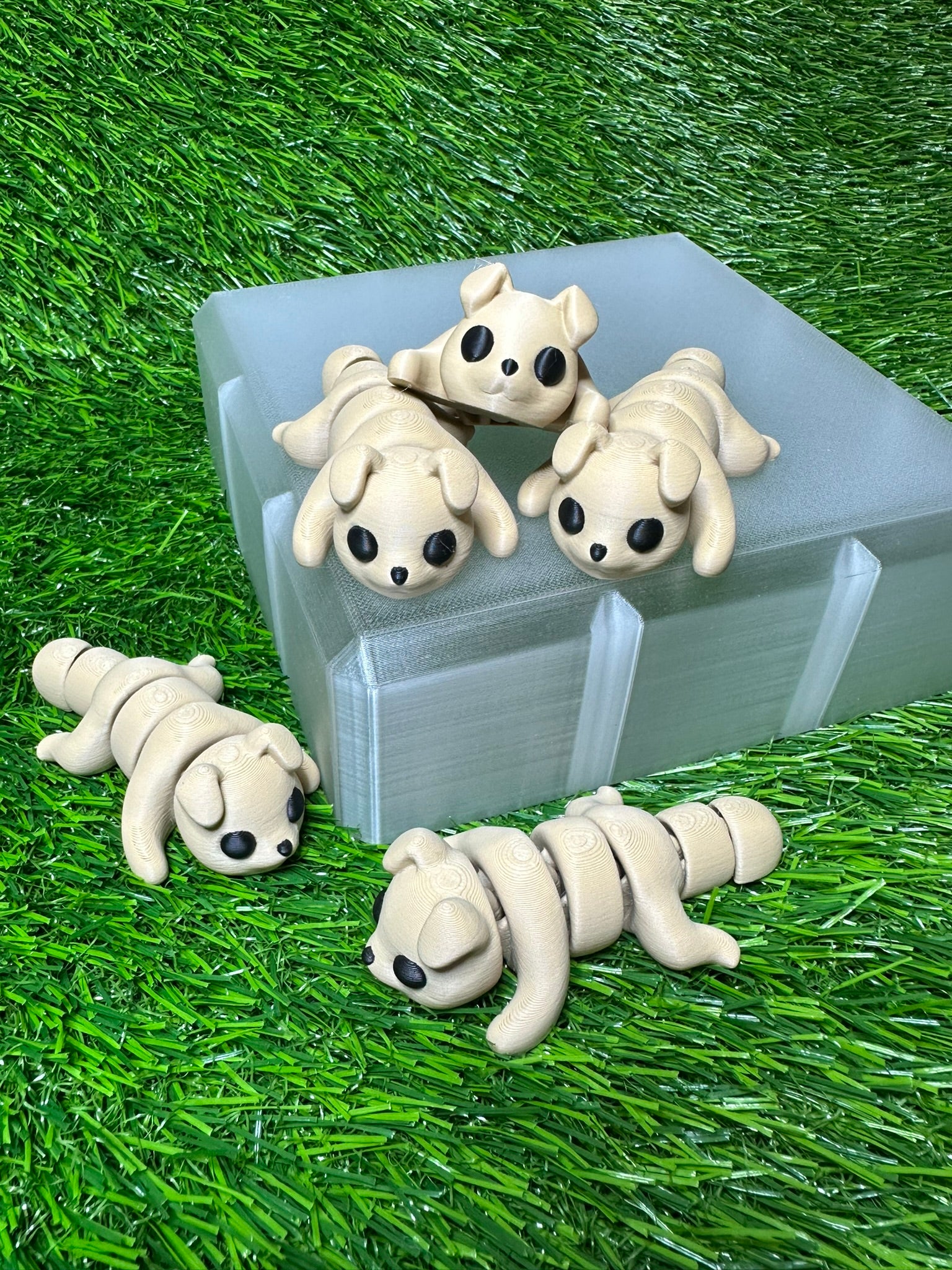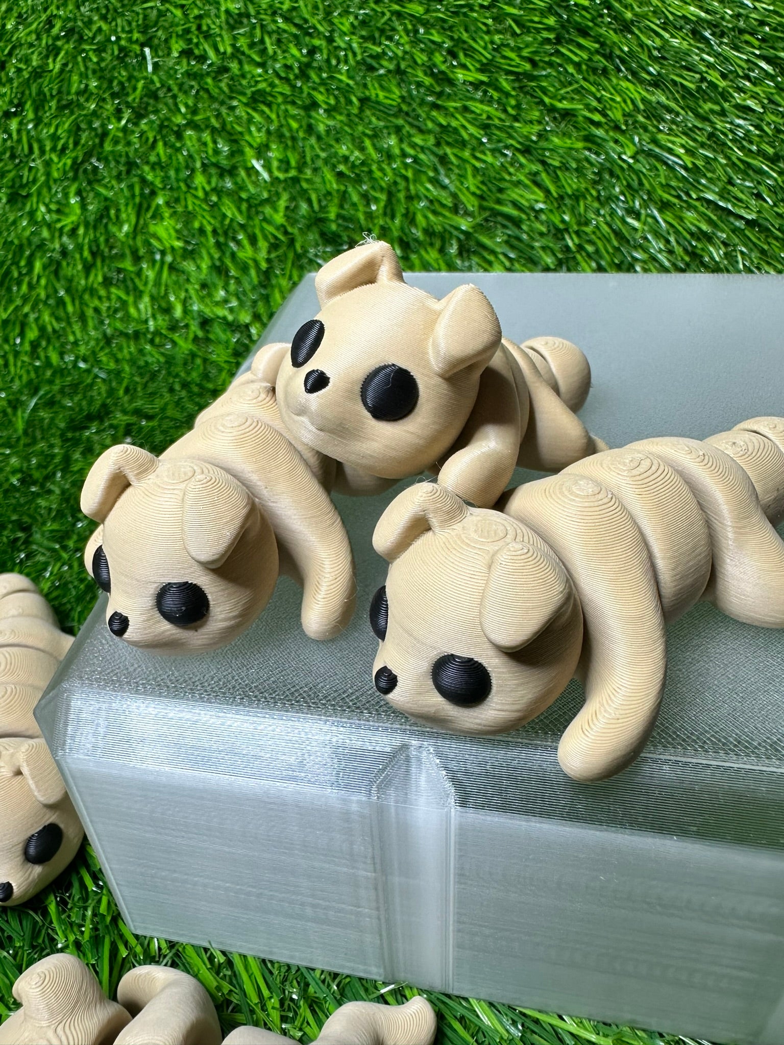 Articulating Puppy Dog Fidget Animal, a charming creation meticulously crafted through cutting-edge 3D printing technology right here in Virginia. Measuring at a delightful 3 1/4 inches long, this fidget toy is not just a playful companion but a testament to precision and durability.