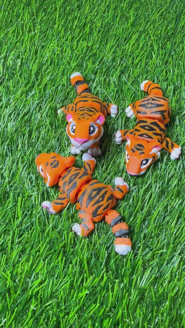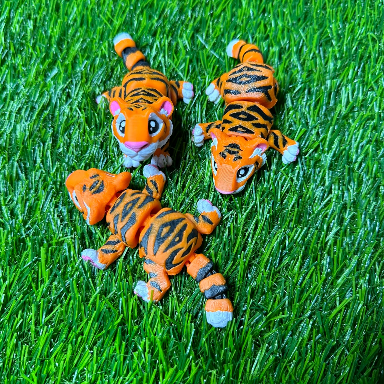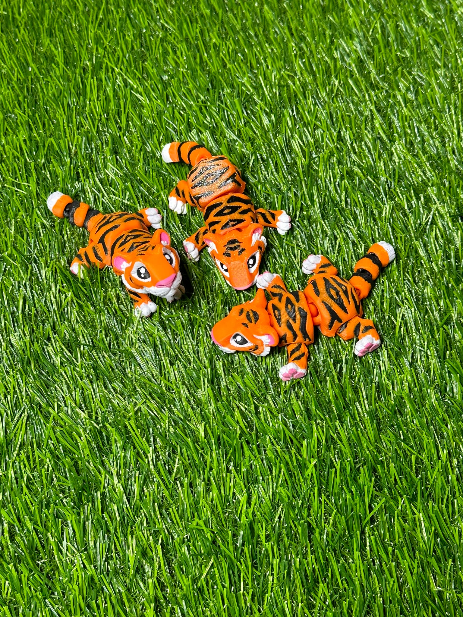 Articulating Tiger Fidget Animal, a charming creation meticulously crafted through cutting-edge 3D printing technology right here in Virginia. Measuring at a delightful 3.5 inches long, this fidget toy is not just a playful companion but a testament to precision and durability.