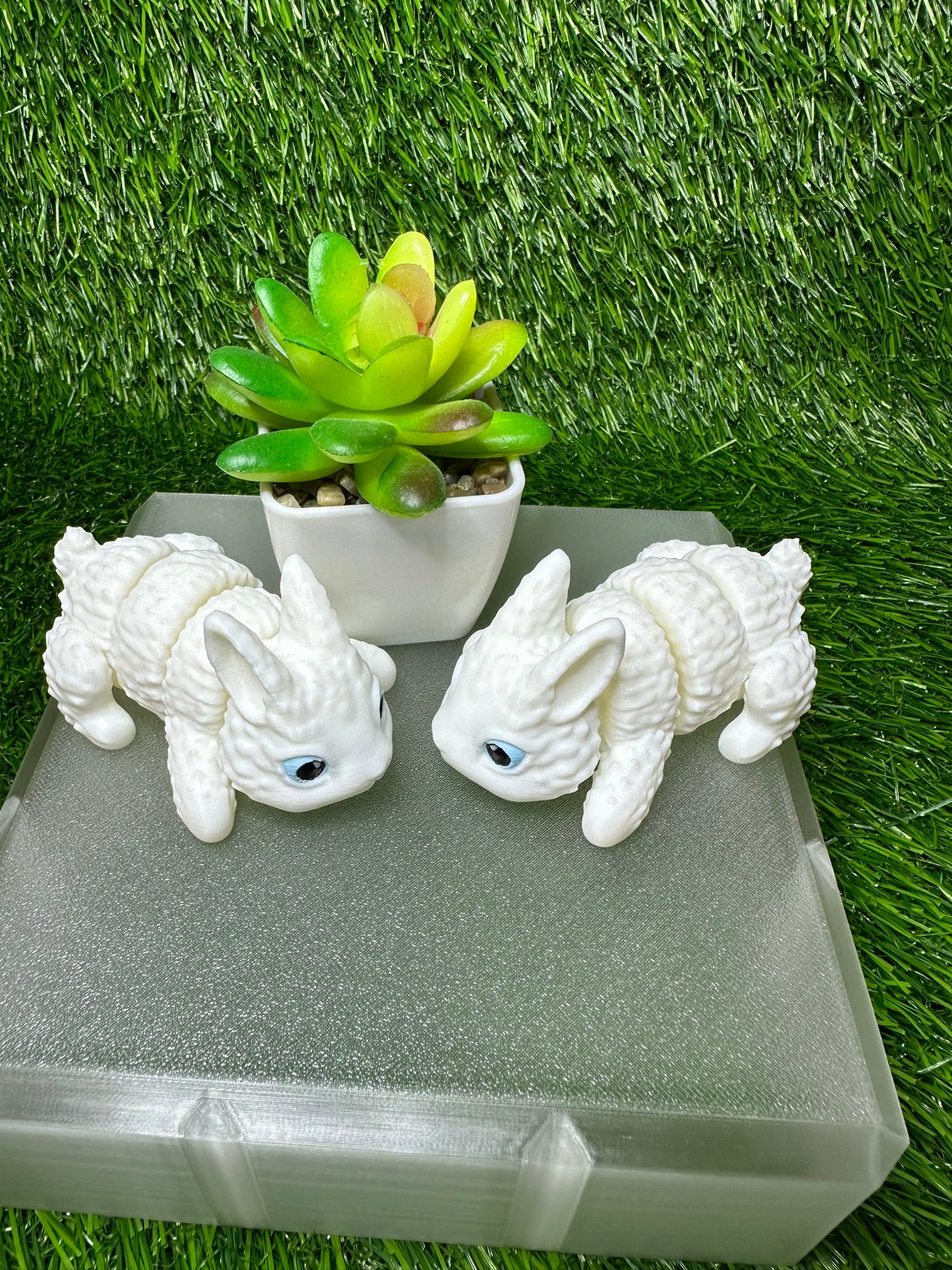 Articulating Bunny Rabbit Fidget Animal, a charming creation meticulously crafted through cutting-edge 3D printing technology right here in Virginia. Measuring at a delightful 3 inches long, this fidget toy is not just a playful companion but a testament to precision and durability.
