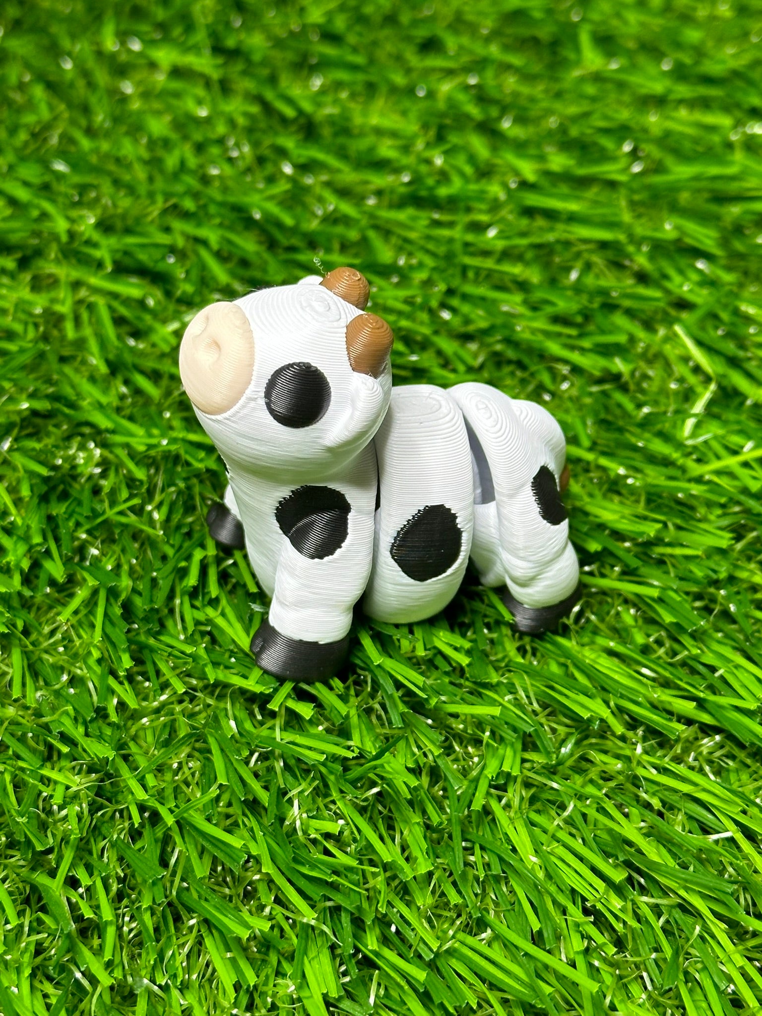 Articulating Cow Fidget Animal, a charming creation meticulously crafted through cutting-edge 3D printing technology right here in Virginia. Measuring at a delightful 1.5 inches long and 1.5 inches tall, this fidget toy is not just a playful companion but a testament to precision and durability.