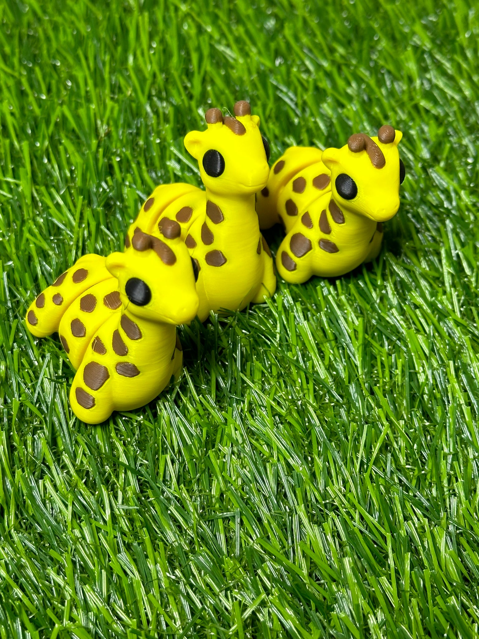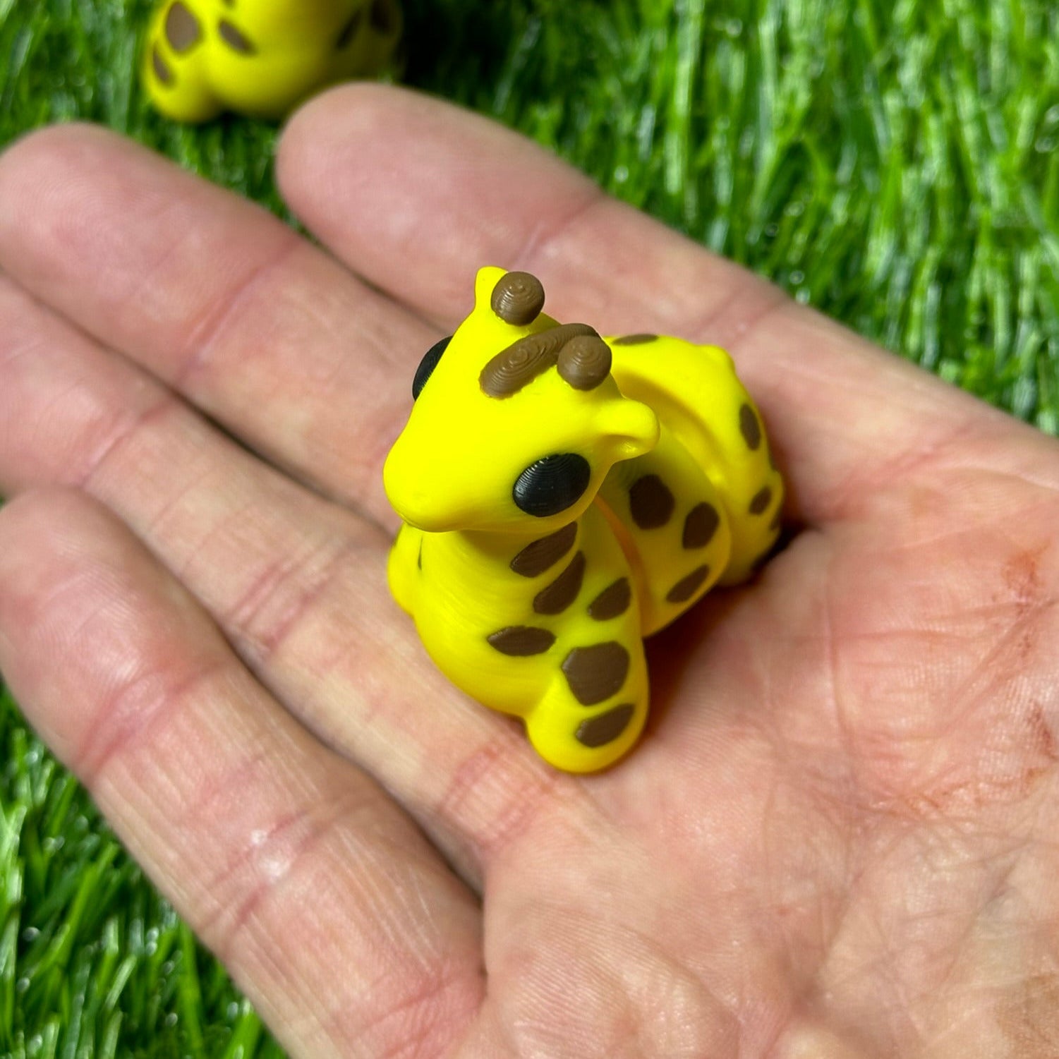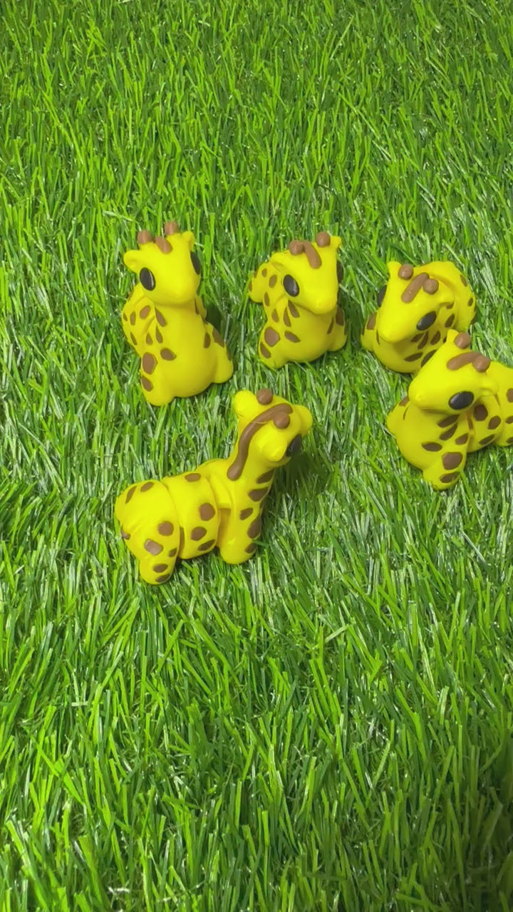 Articulating Giraffe Fidget Animal, a charming creation meticulously crafted through cutting-edge 3D printing technology right here in Virginia. Measuring at a delightful 1 3/4 inches long, and 2 inches tall, this fidget toy is not just a playful companion but a testament to precision and durability.