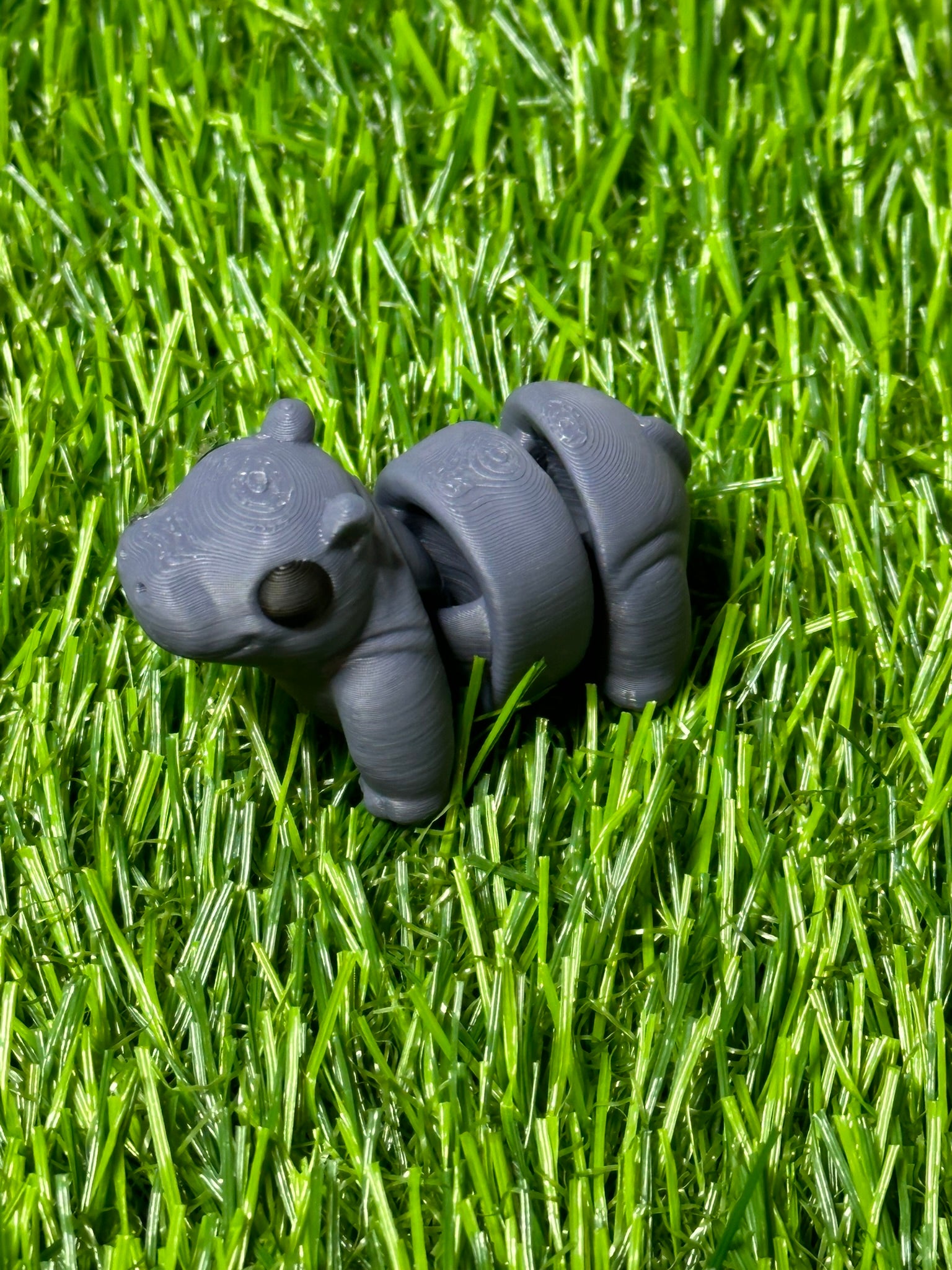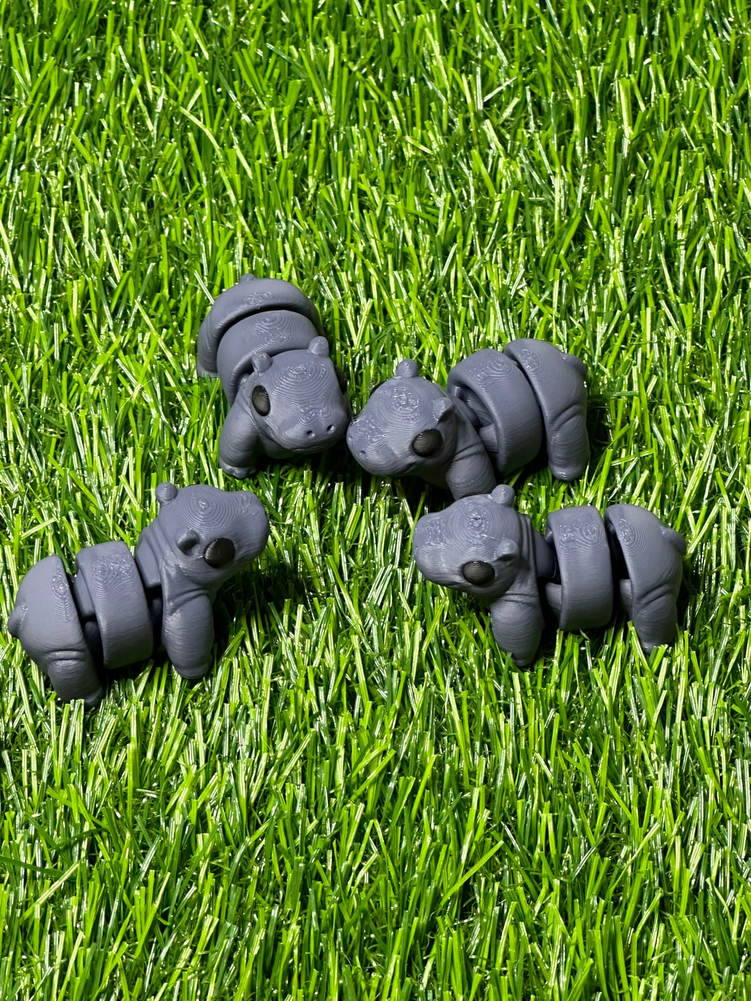 Articulating Hippo Fidget Animal, a charming creation meticulously crafted through cutting-edge 3D printing technology right here in Virginia. Measuring at a delightful 2 inches long, and 1 1/4 inches tall, this fidget toy is not just a playful companion but a testament to precision and durability.