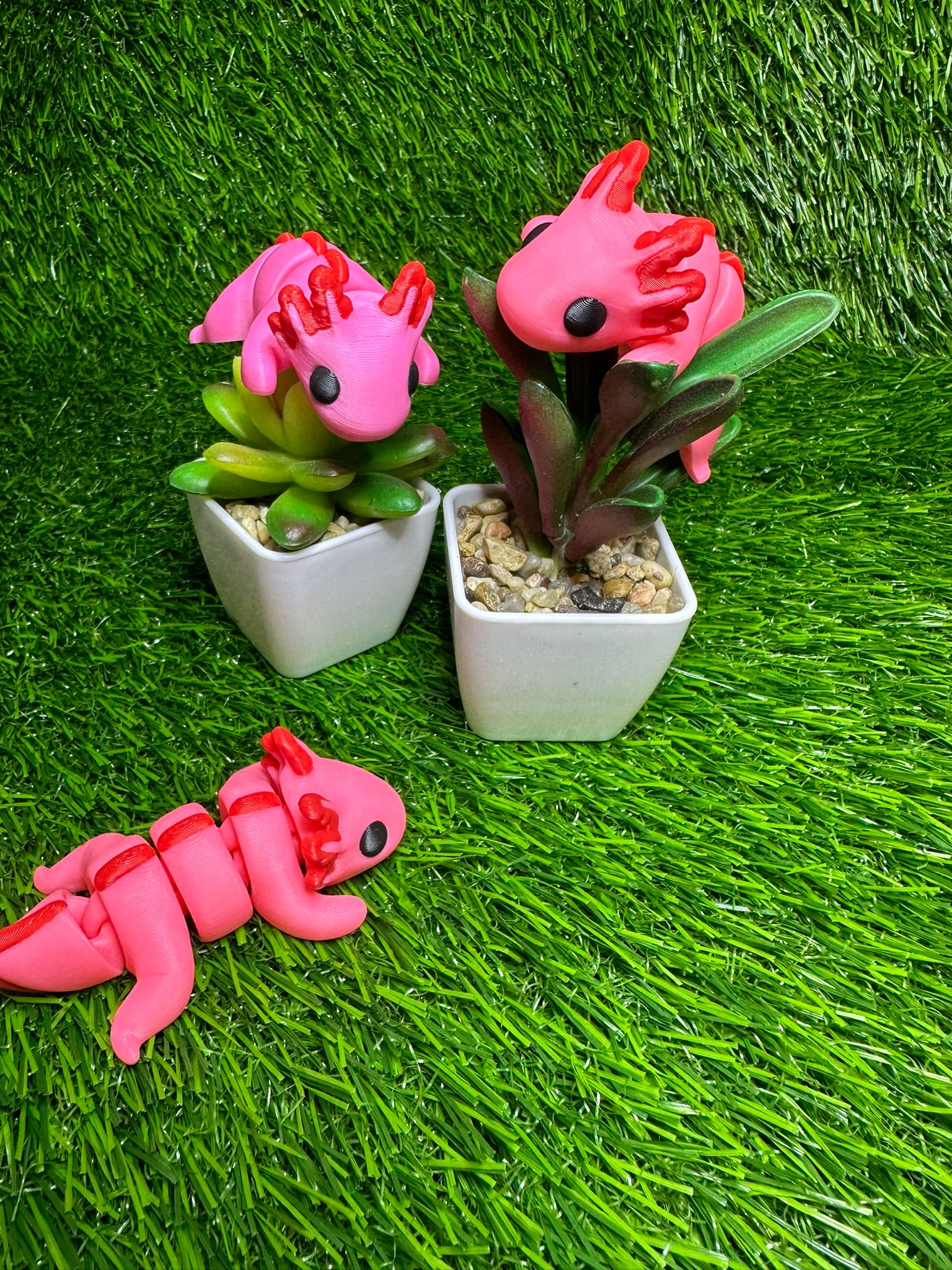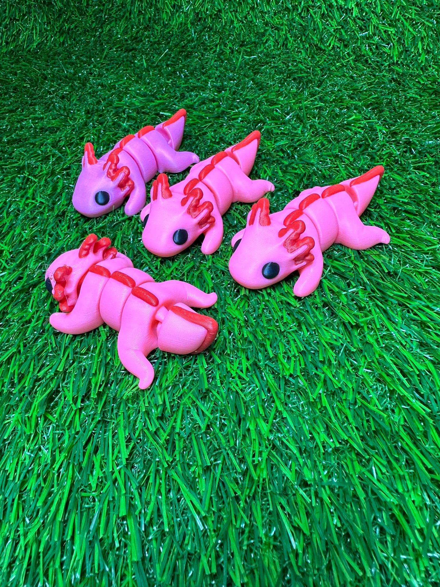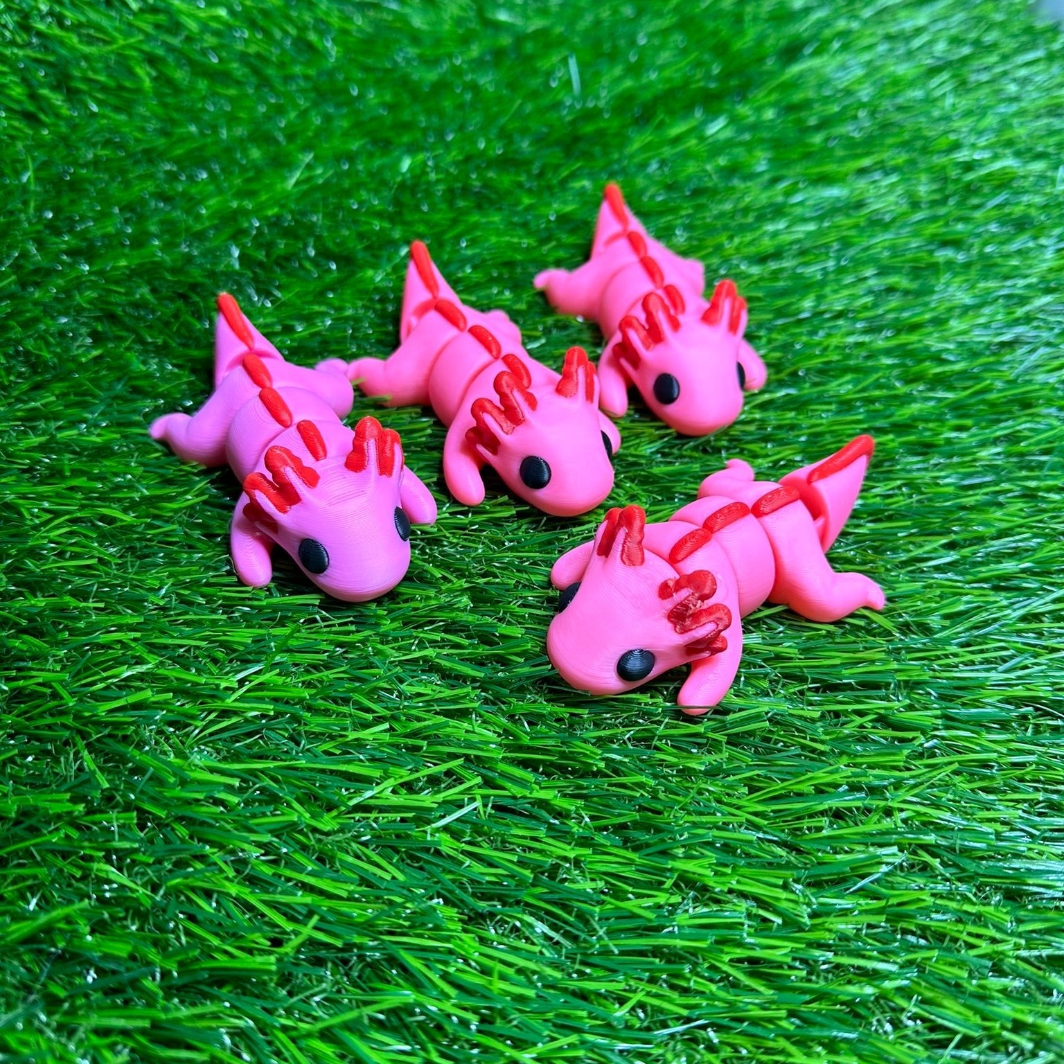 Articulating Axolotl Fidget Animal, a charming creation meticulously crafted through cutting-edge 3D printing technology right here in Virginia. Measuring at a delightful 3.25 inches long, this fidget toy is not just a playful companion but a testament to precision and durability.