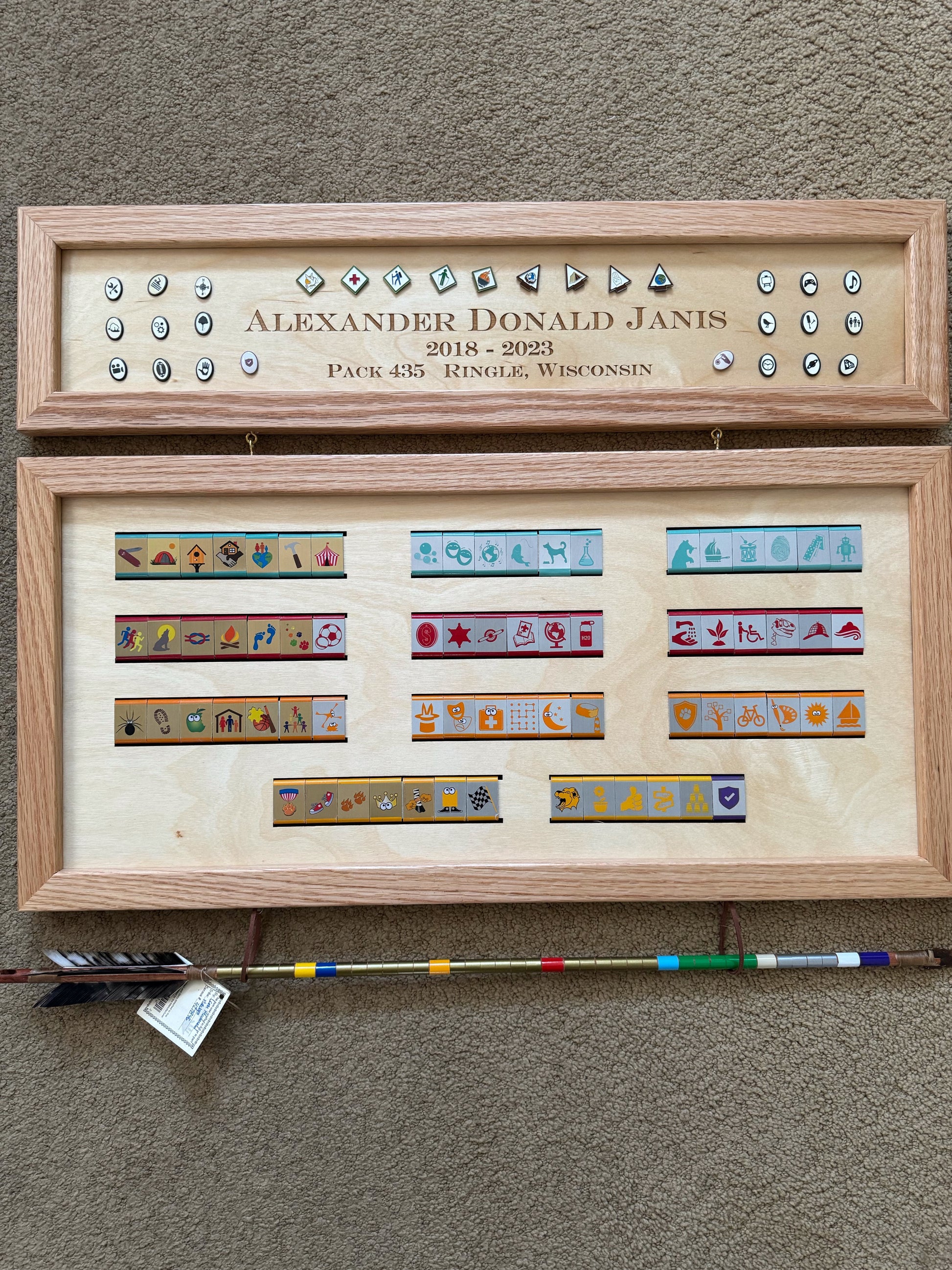 This plaque was made to house all of the available belt loops and pins. To make sure we have spaces available for all your awards, please count them and message us so that we can double check the spaces available on the plaque