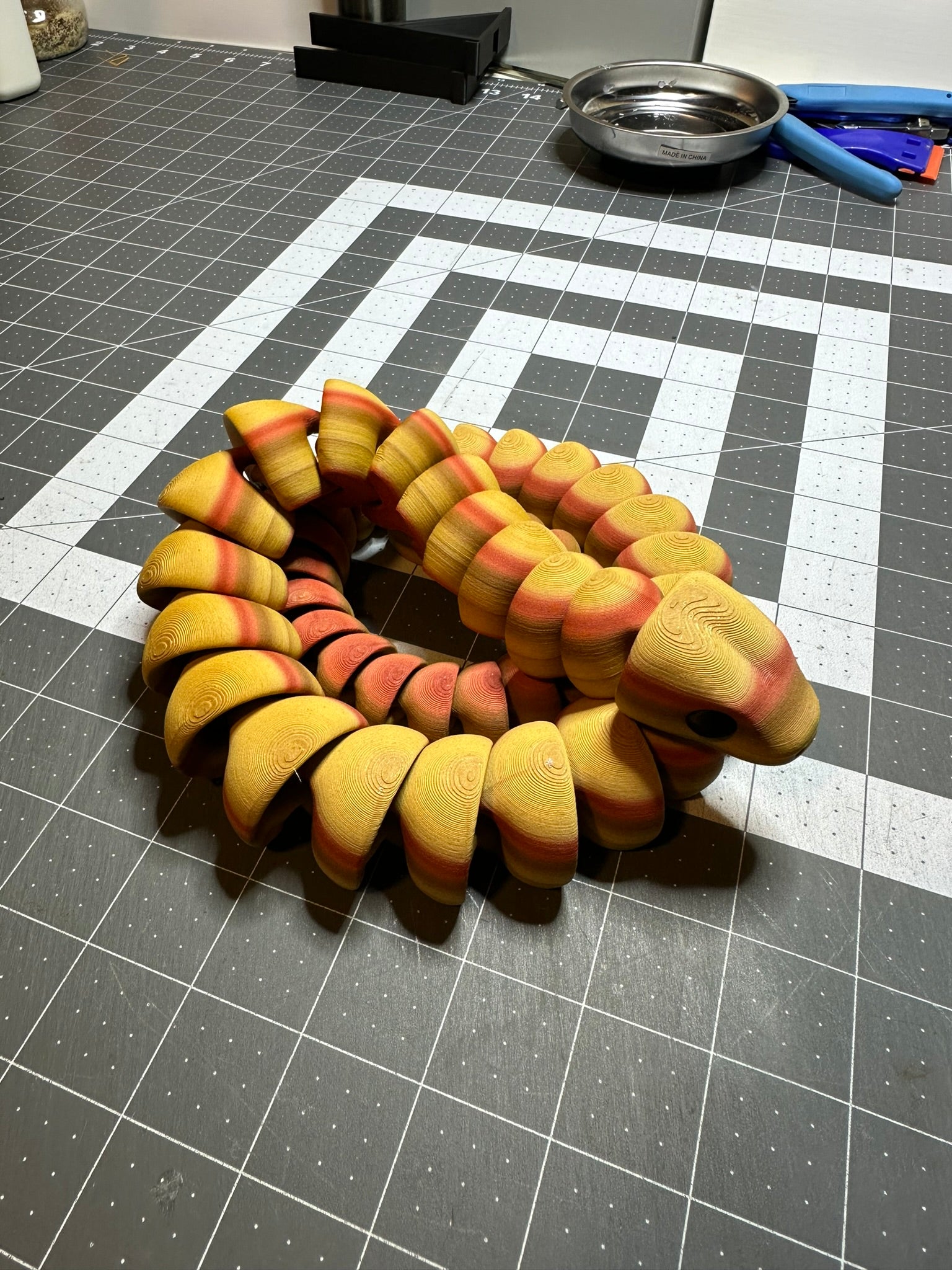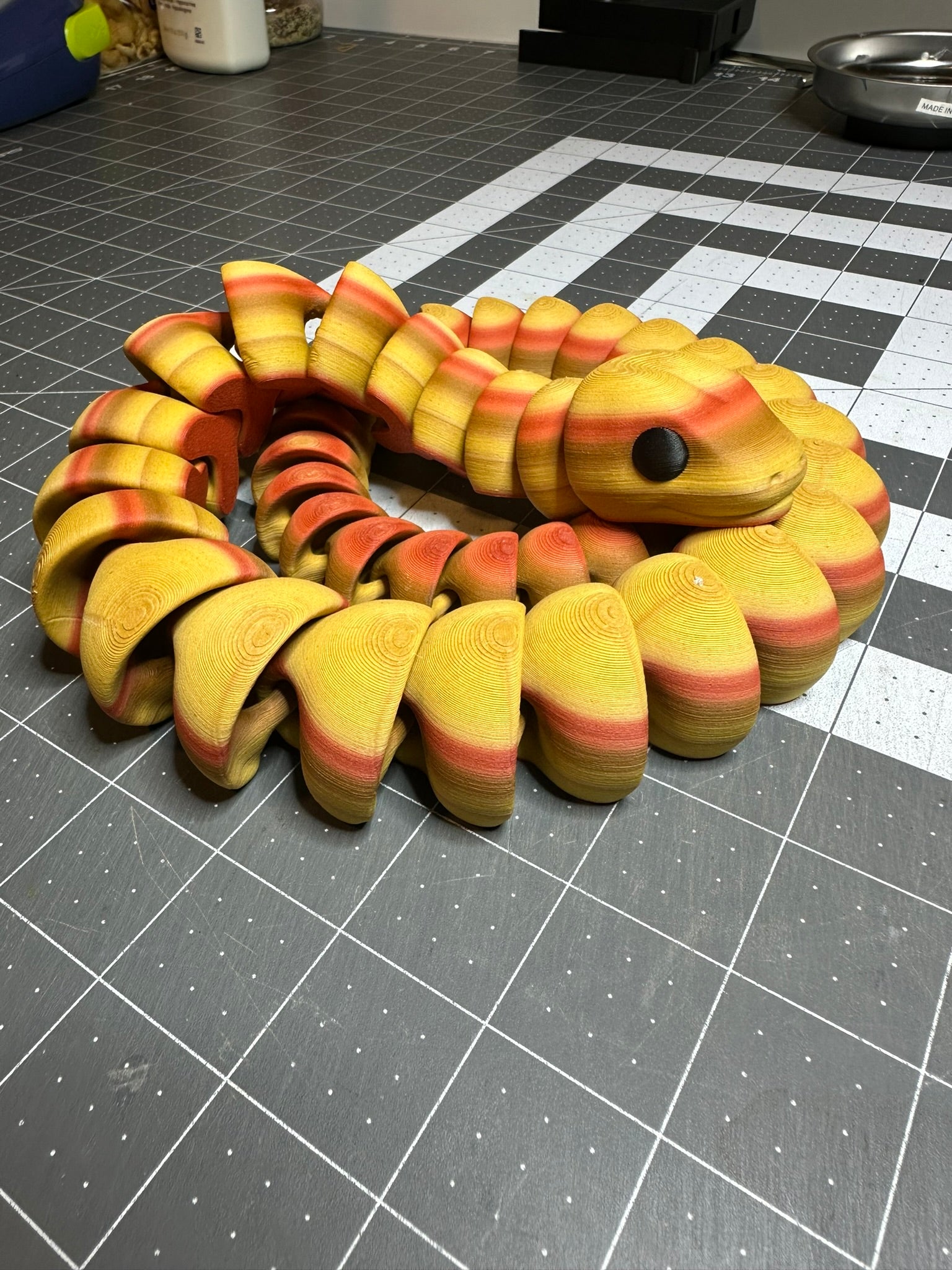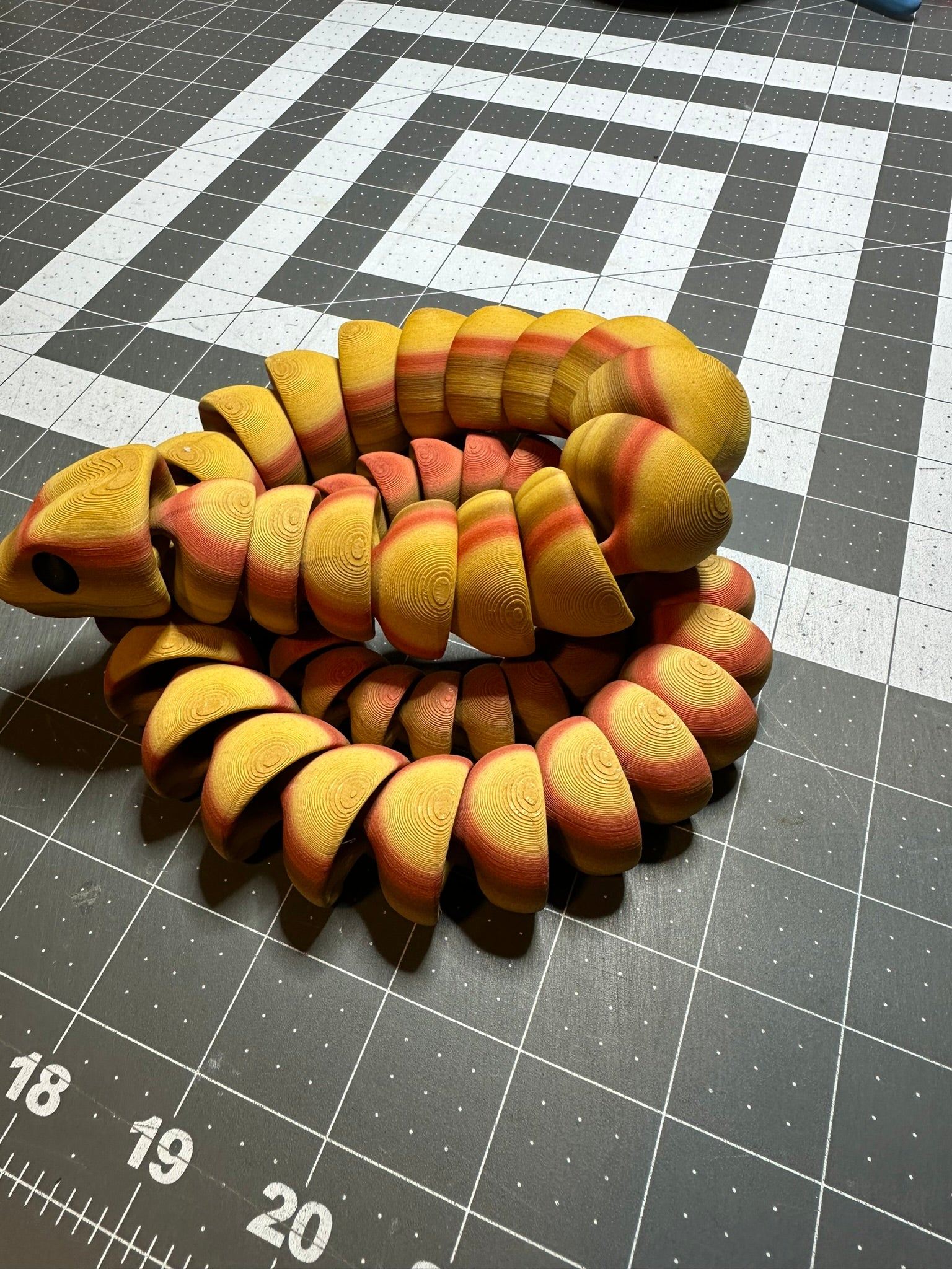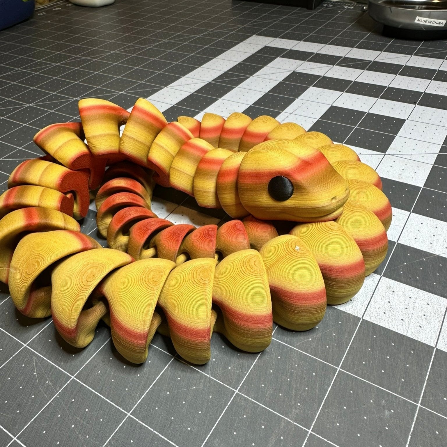 Articulating Snake Fidget Animal, a charming creation meticulously crafted through cutting-edge 3D printing technology right here in Virginia. Measuring at a delightful 4.25 inches long, this fidget toy is not just a playful companion but a testament to precision and durability.