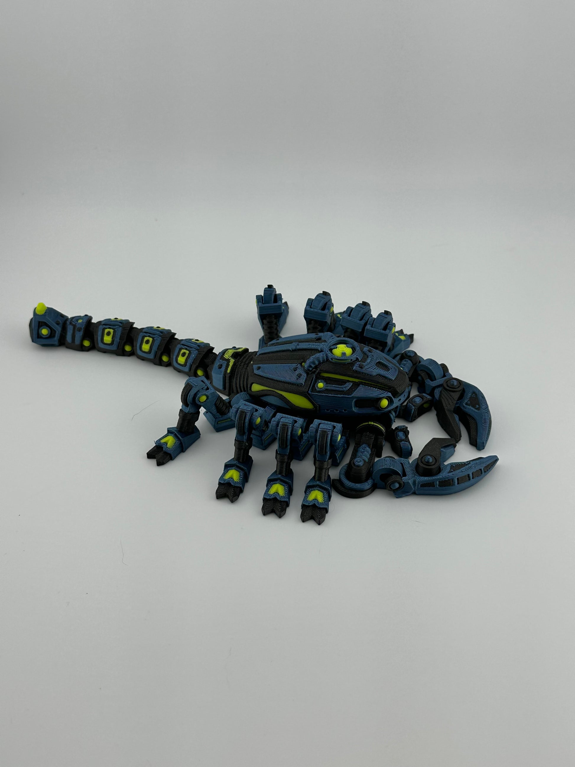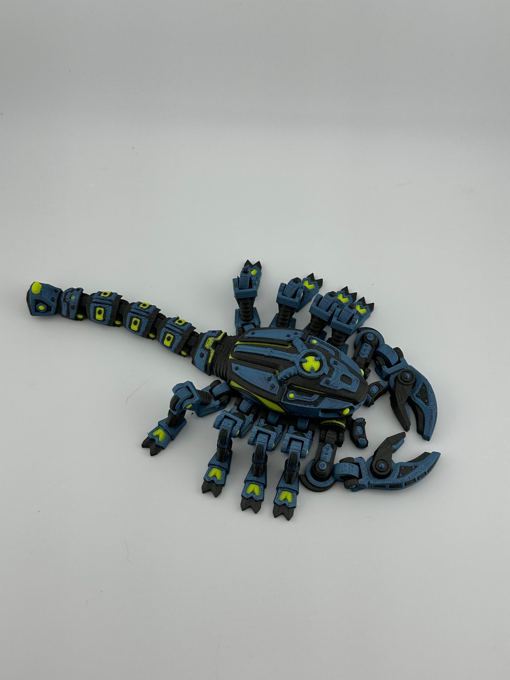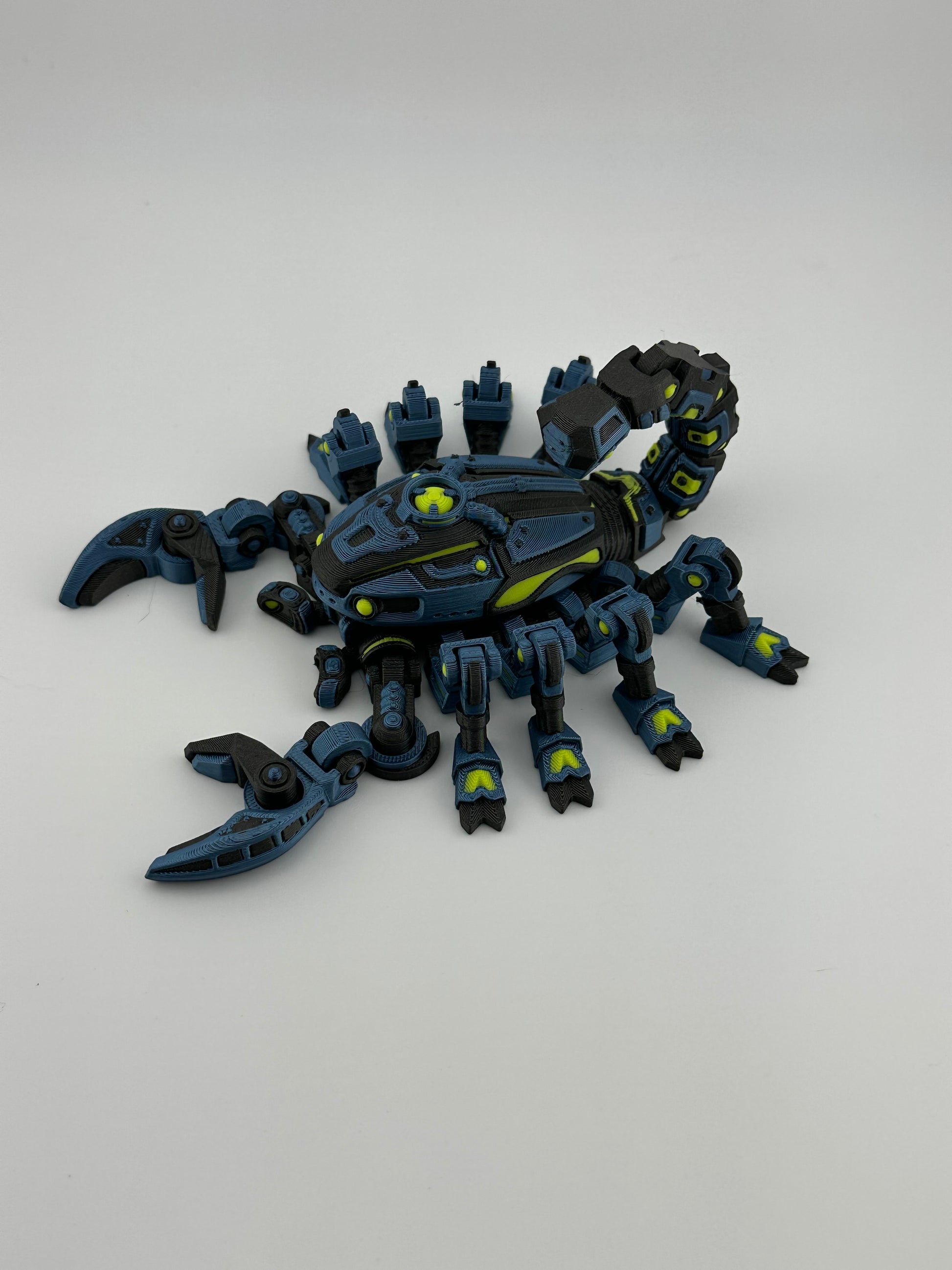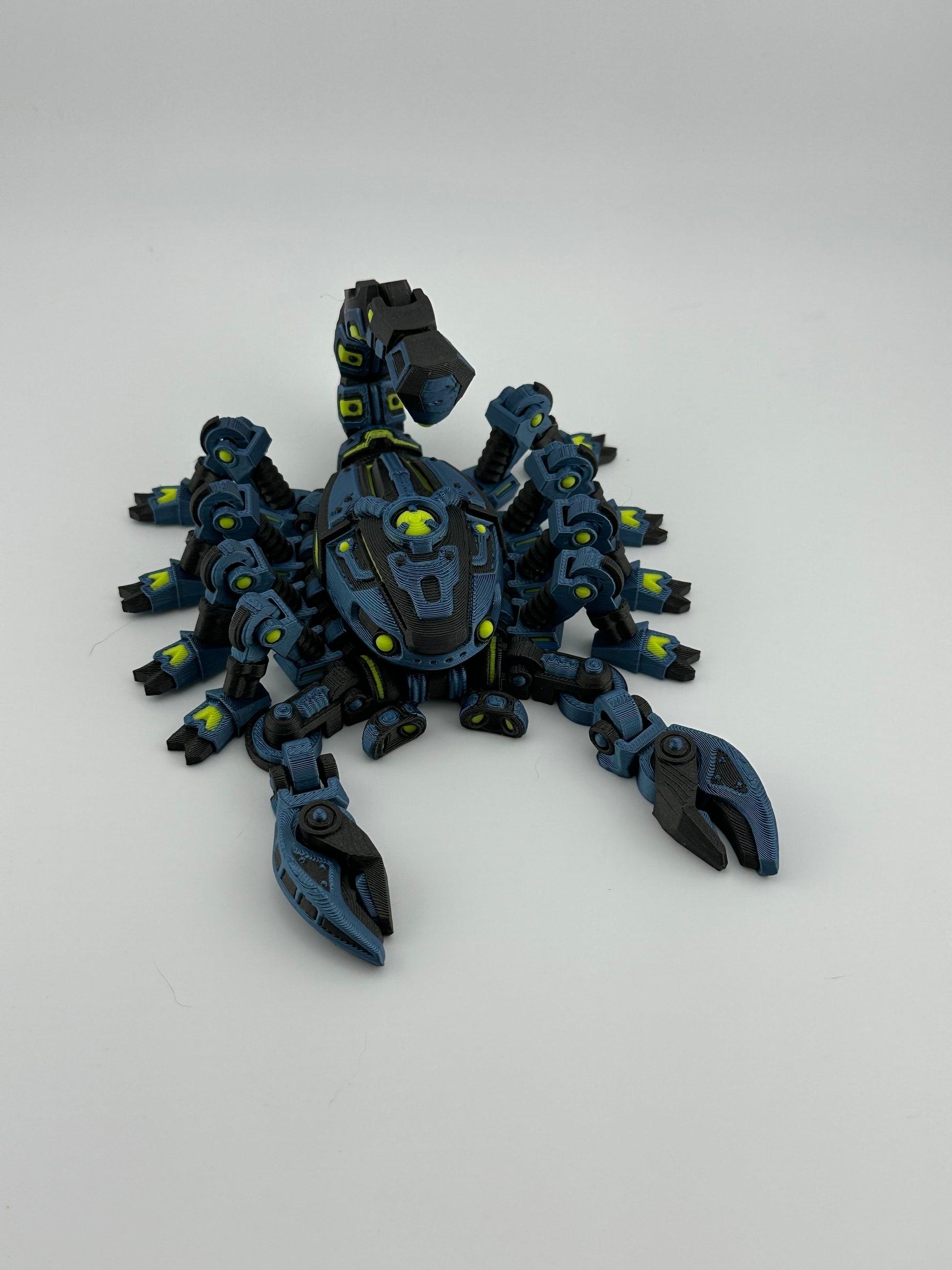 Unleash the future of fidgeting with this 3D Printed Articulating Cyber Scorpion! Designed with sleek robotic features and printed in bold, vibrant colors, this futuristic scorpion is the perfect desktop companion. Each segment moves fluidly, from its articulated legs to its curling tail, giving it lifelike motion and satisfying fidget functionality.