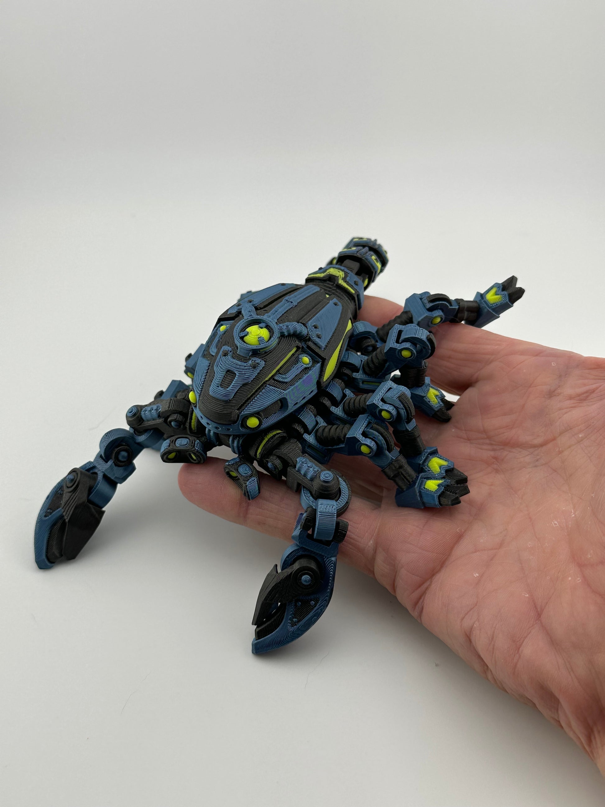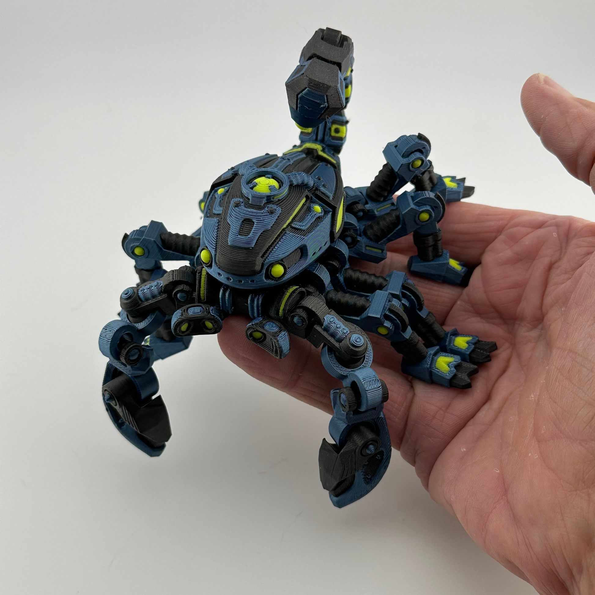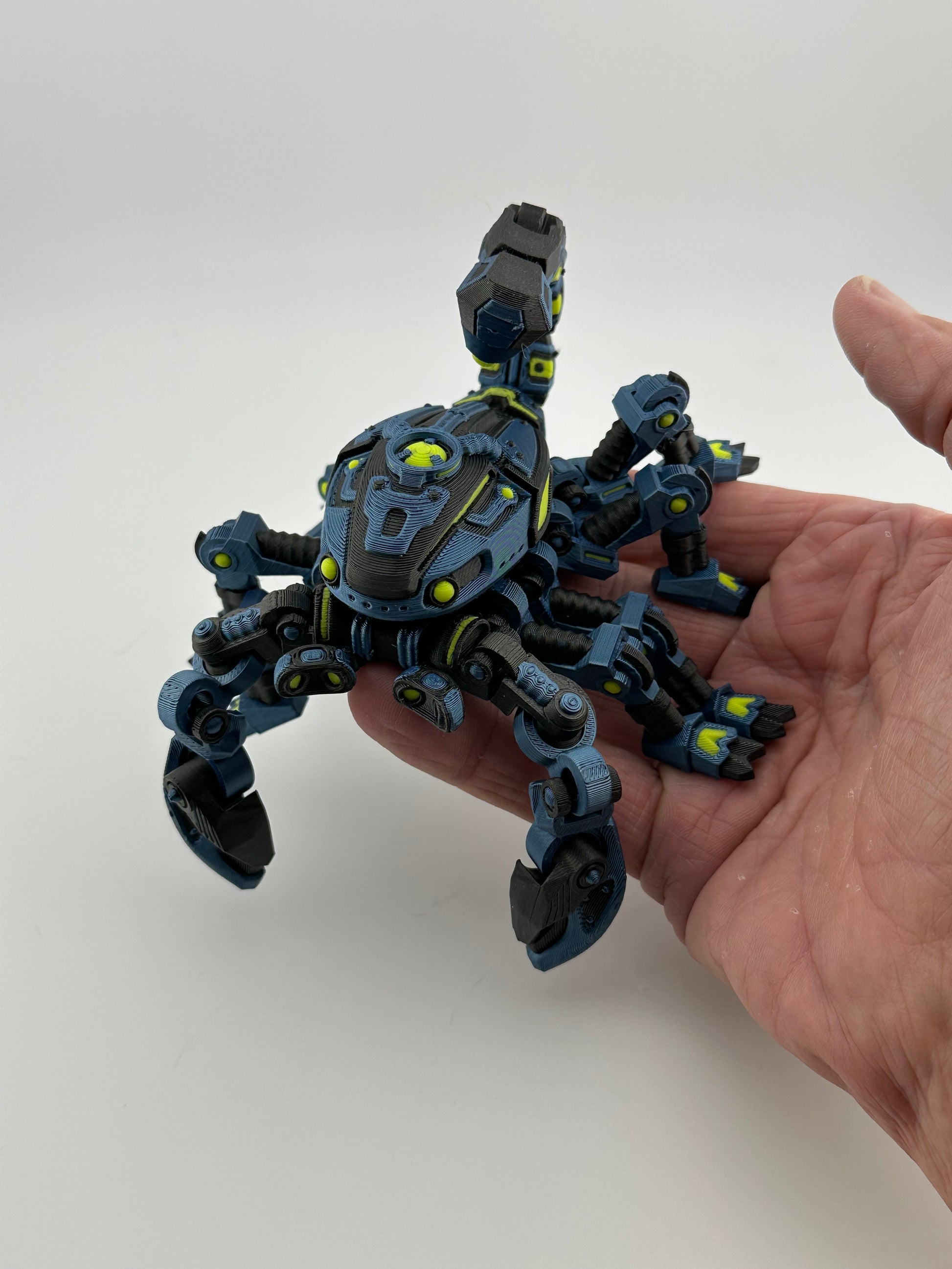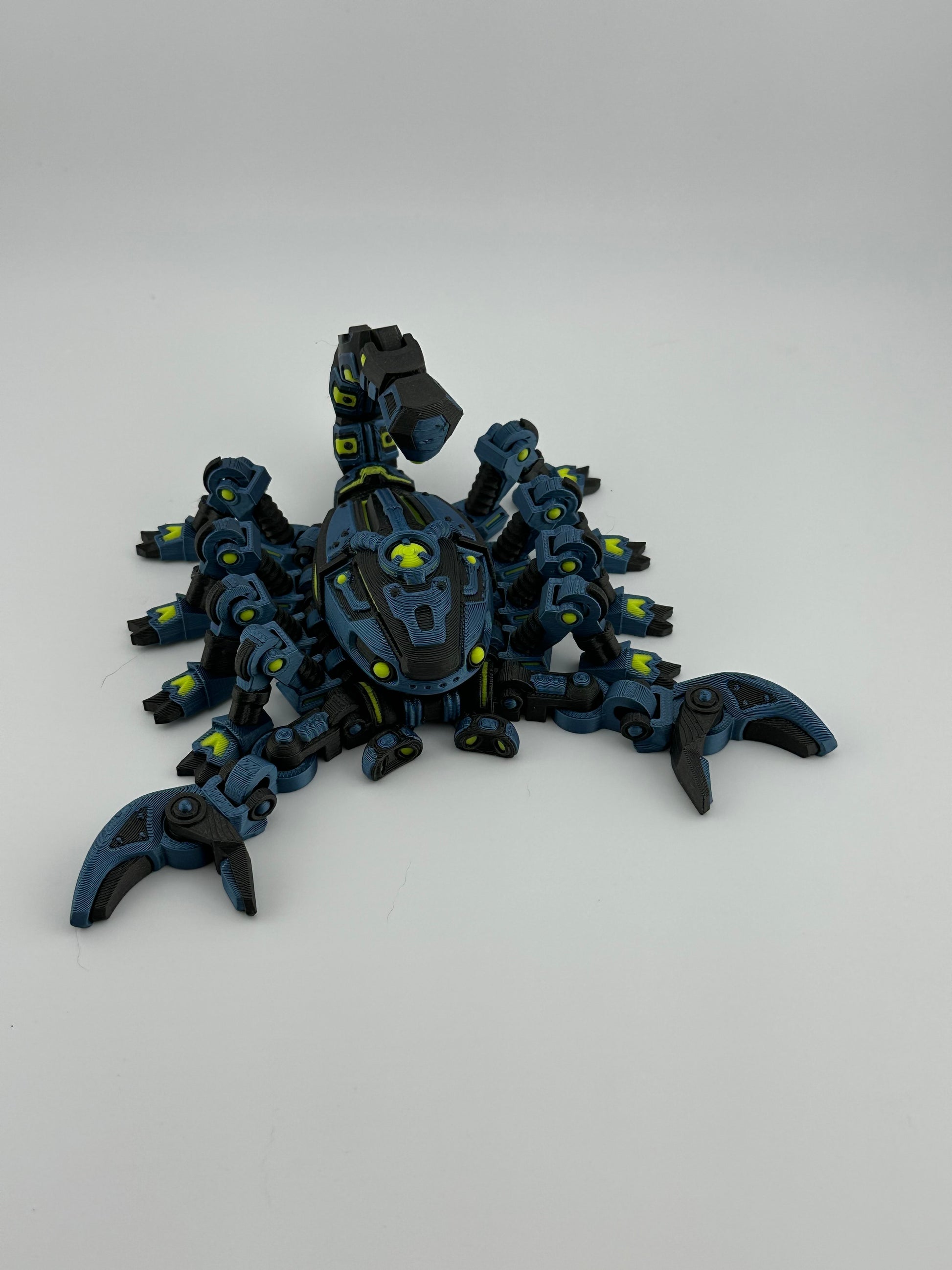 Unleash the future of fidgeting with this 3D Printed Articulating Cyber Scorpion! Designed with sleek robotic features and printed in bold, vibrant colors, this futuristic scorpion is the perfect desktop companion. Each segment moves fluidly, from its articulated legs to its curling tail, giving it lifelike motion and satisfying fidget functionality.