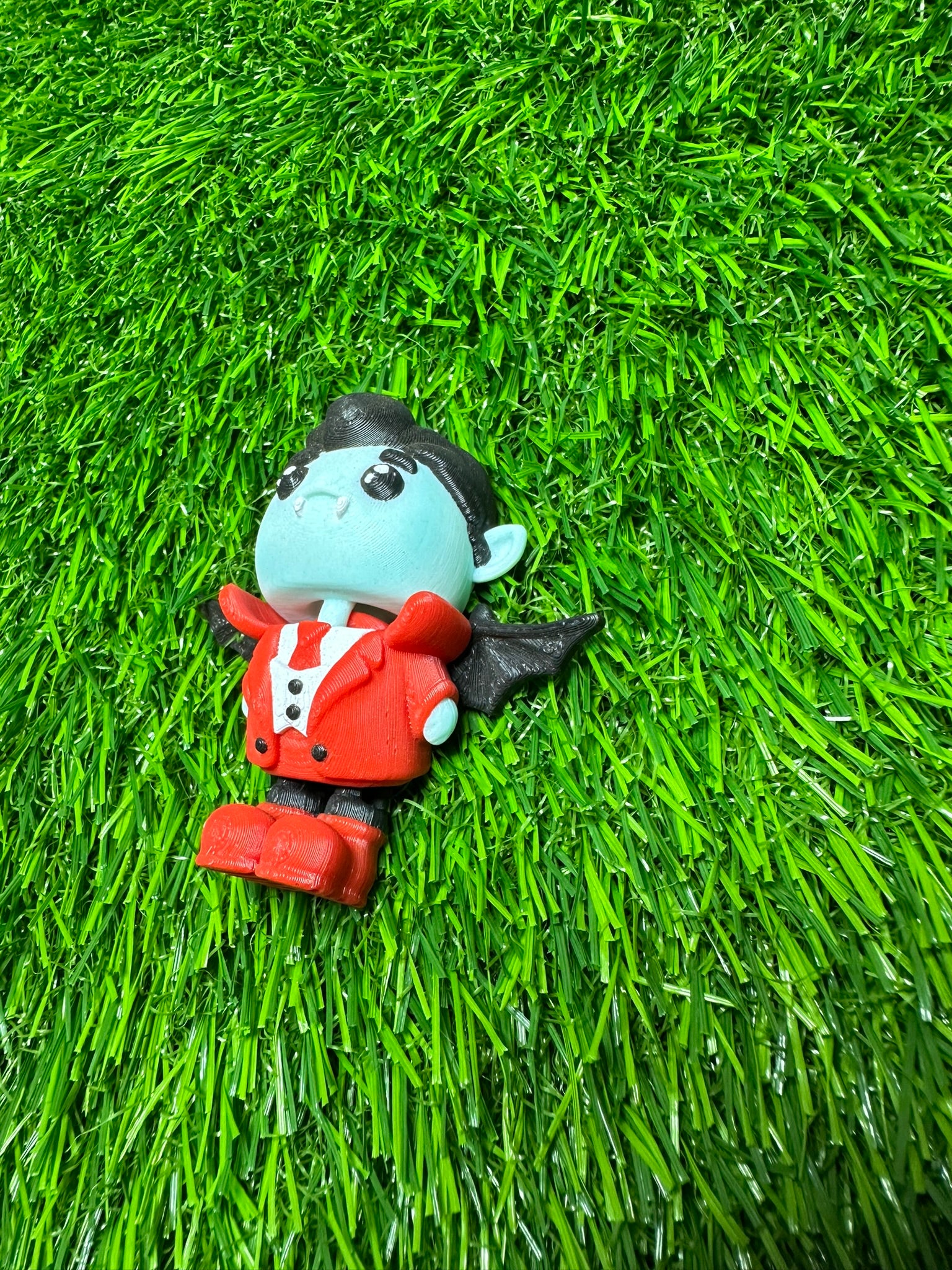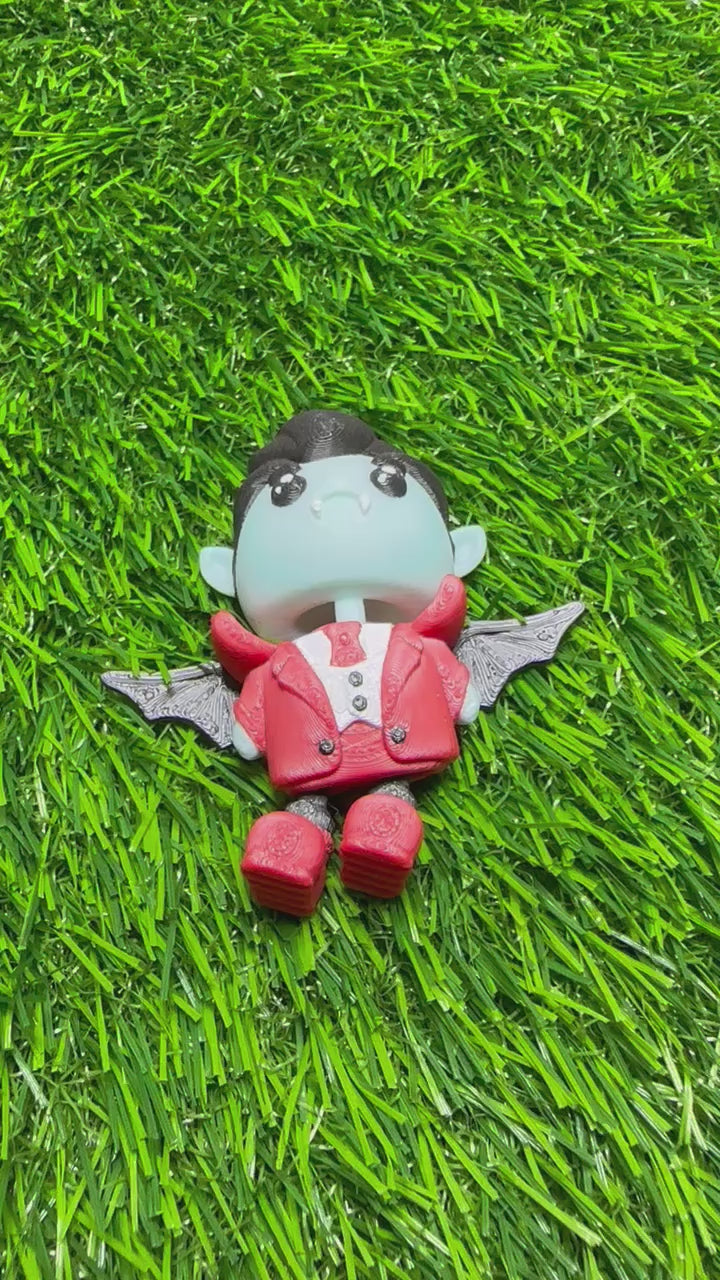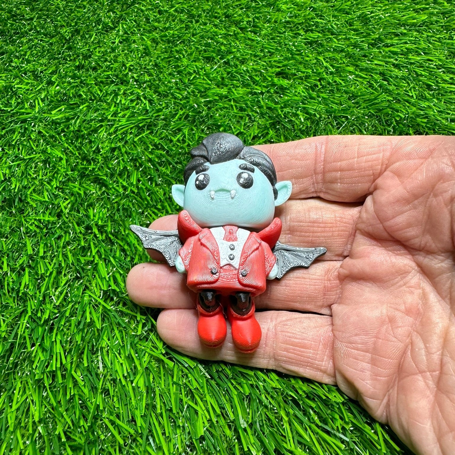 Articulating Dracula Vampire Fidget, a charming creation meticulously crafted through cutting-edge 3D printing technology right here in Virginia. Standing at a delightful 2.5 inches tall, this fidget toy is not just a playful companion but a testament to precision and durability.