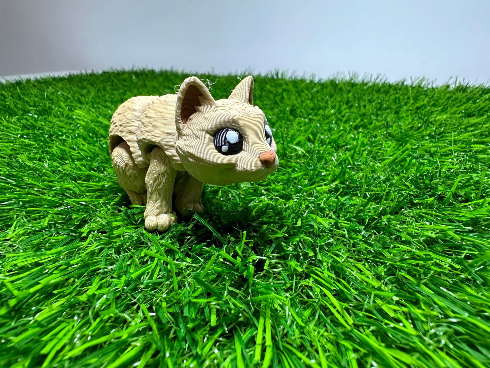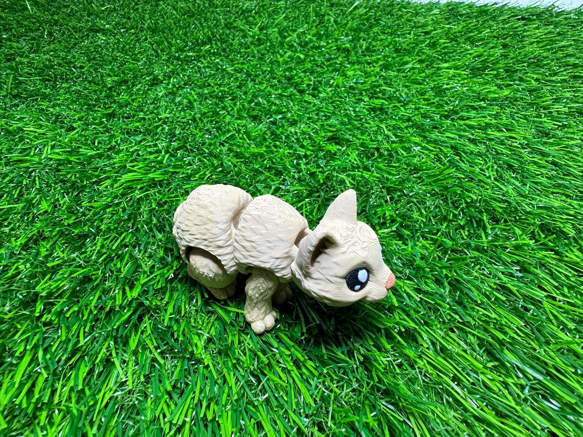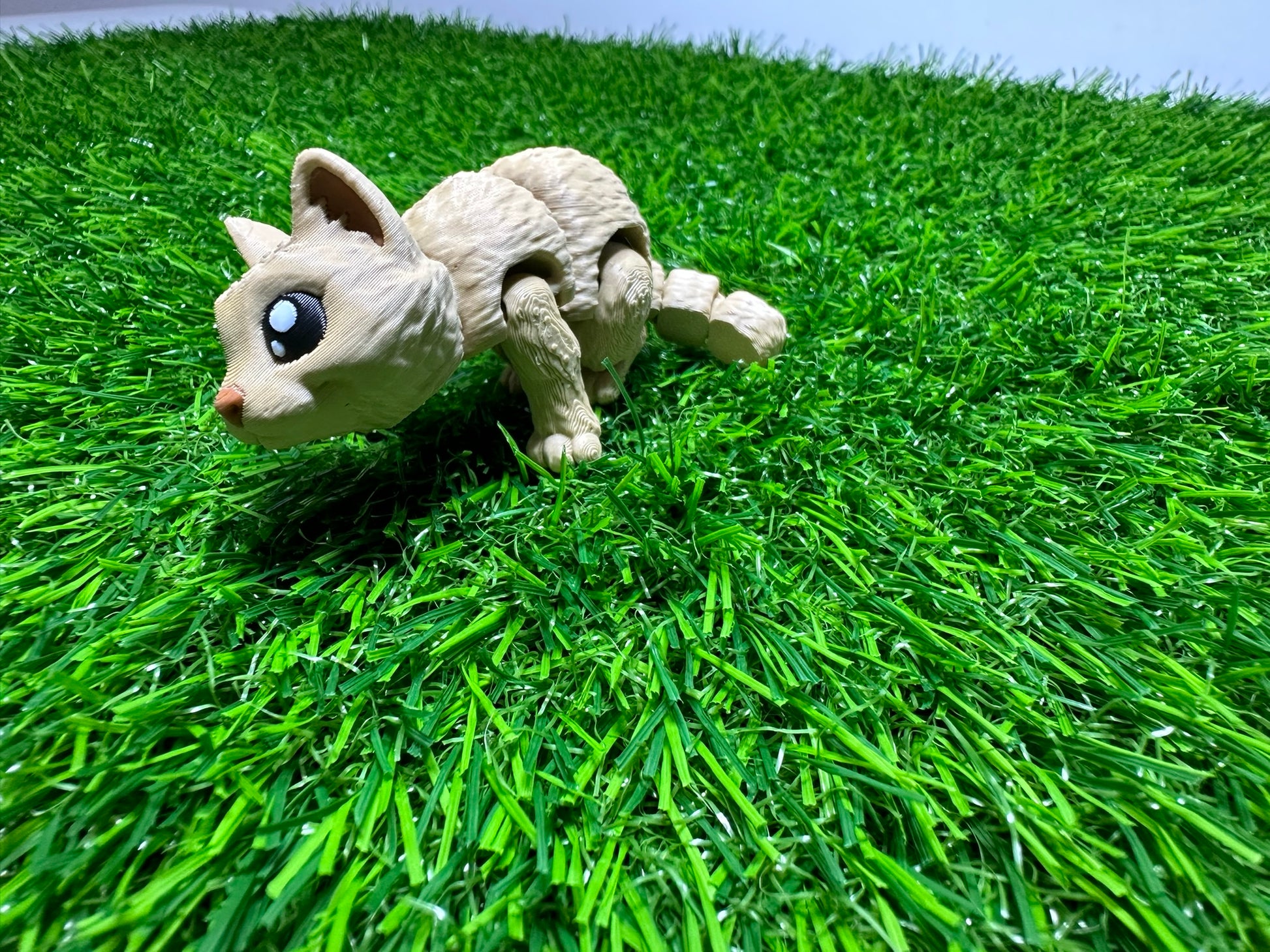 Articulating Kitty Cat Fidget, a charming creation meticulously crafted through cutting-edge 3D printing technology right here in Virginia. Standing at a delightful 2.5 inches tall, this fidget toy is not just a playful companion but a testament to precision and durability.