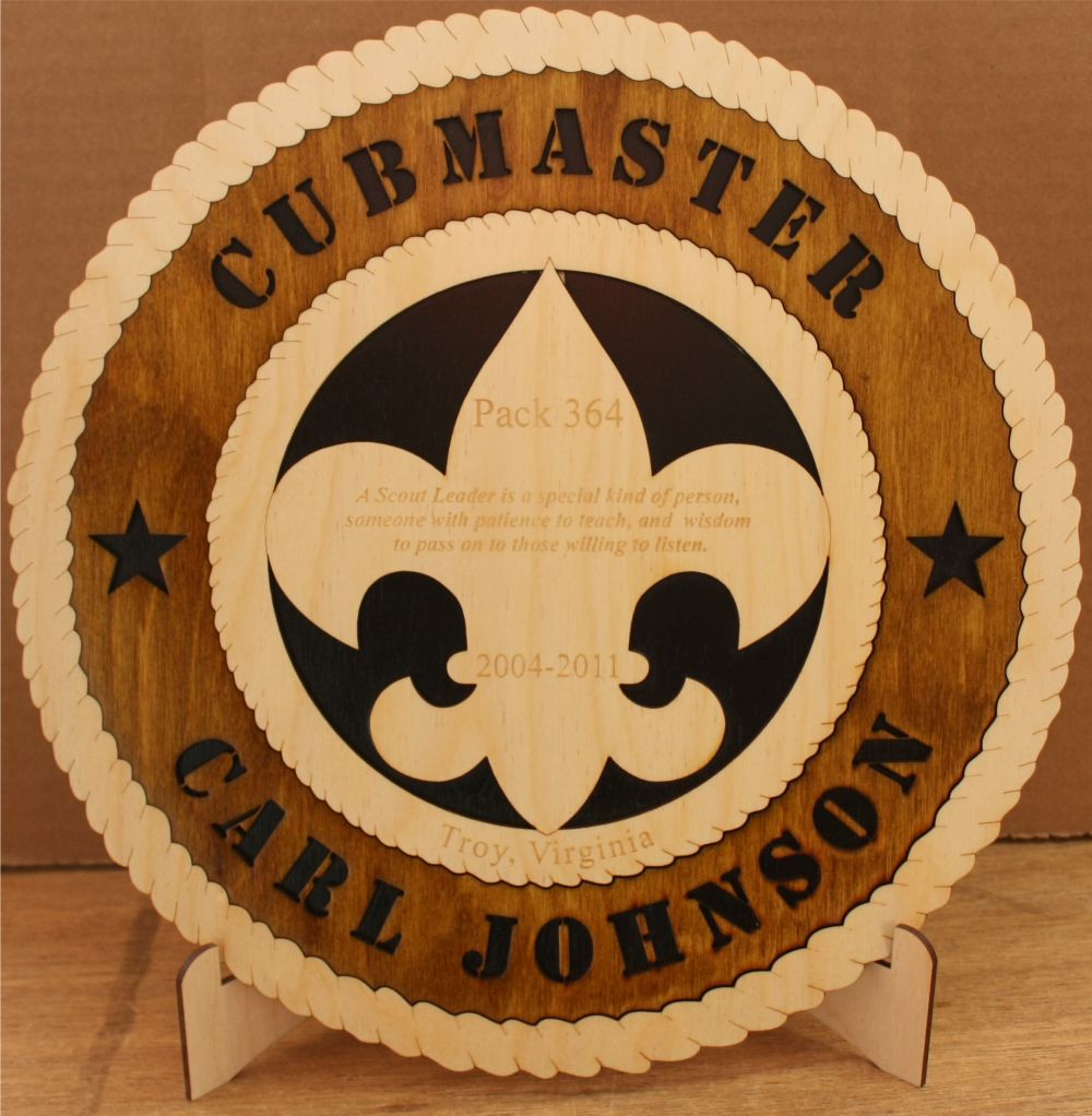 Crafted from high-quality, sustainably sourced wood, each plaque measures 11" inches in diameter and includes a desk stand, making it the perfect size for showcasing in an office, home, or Scout hall. The intricate engravings highlight the leader's name and the position they held, surrounded by thoughtful elements that echo the spirit of scouting. The rich, natural grain of the wood adds a touch of rustic elegance, while the durable finish ensures it remains a cherished token for years to come. To maintain its pristine condition, simply wipe gently with a dry cloth.