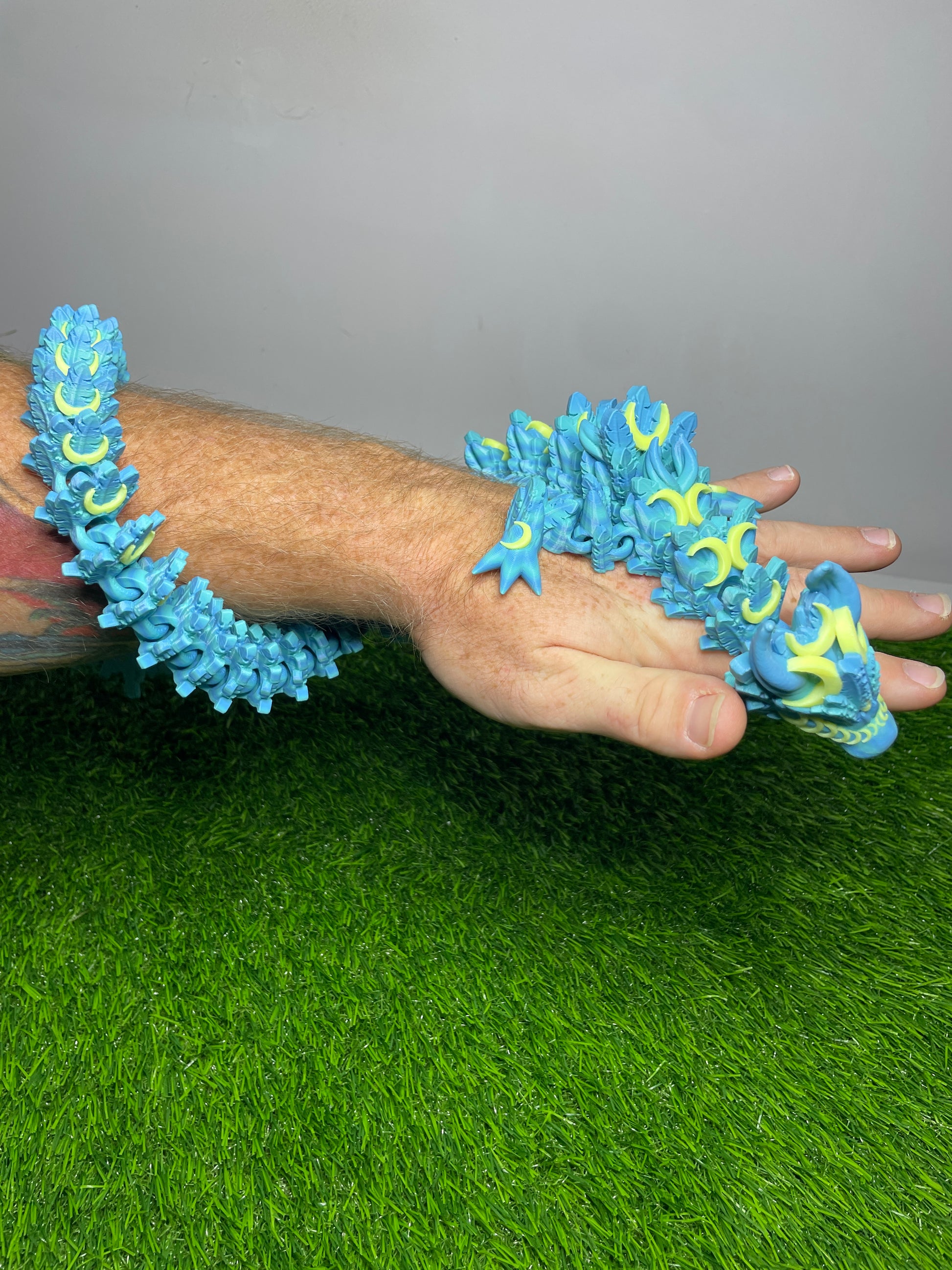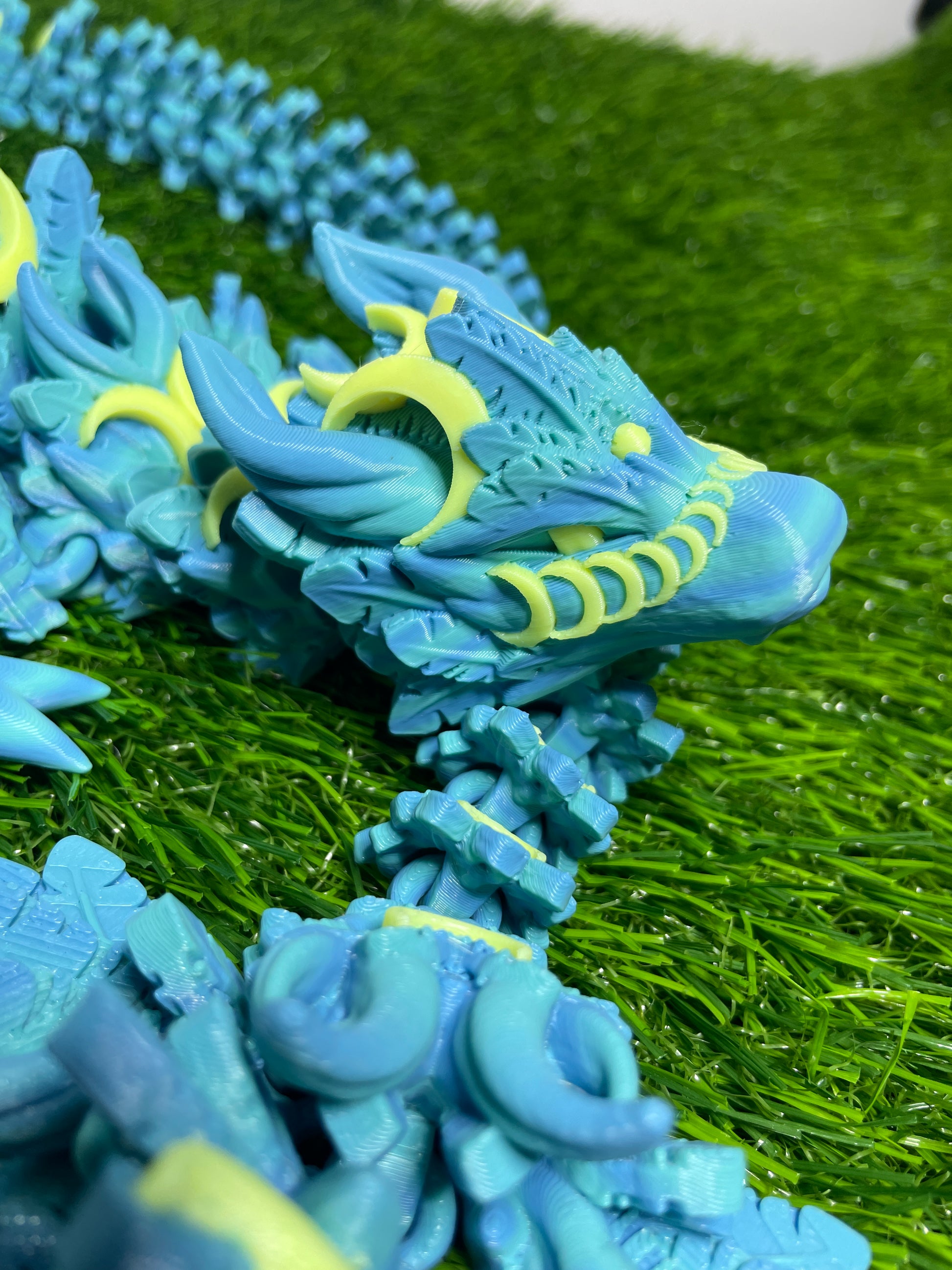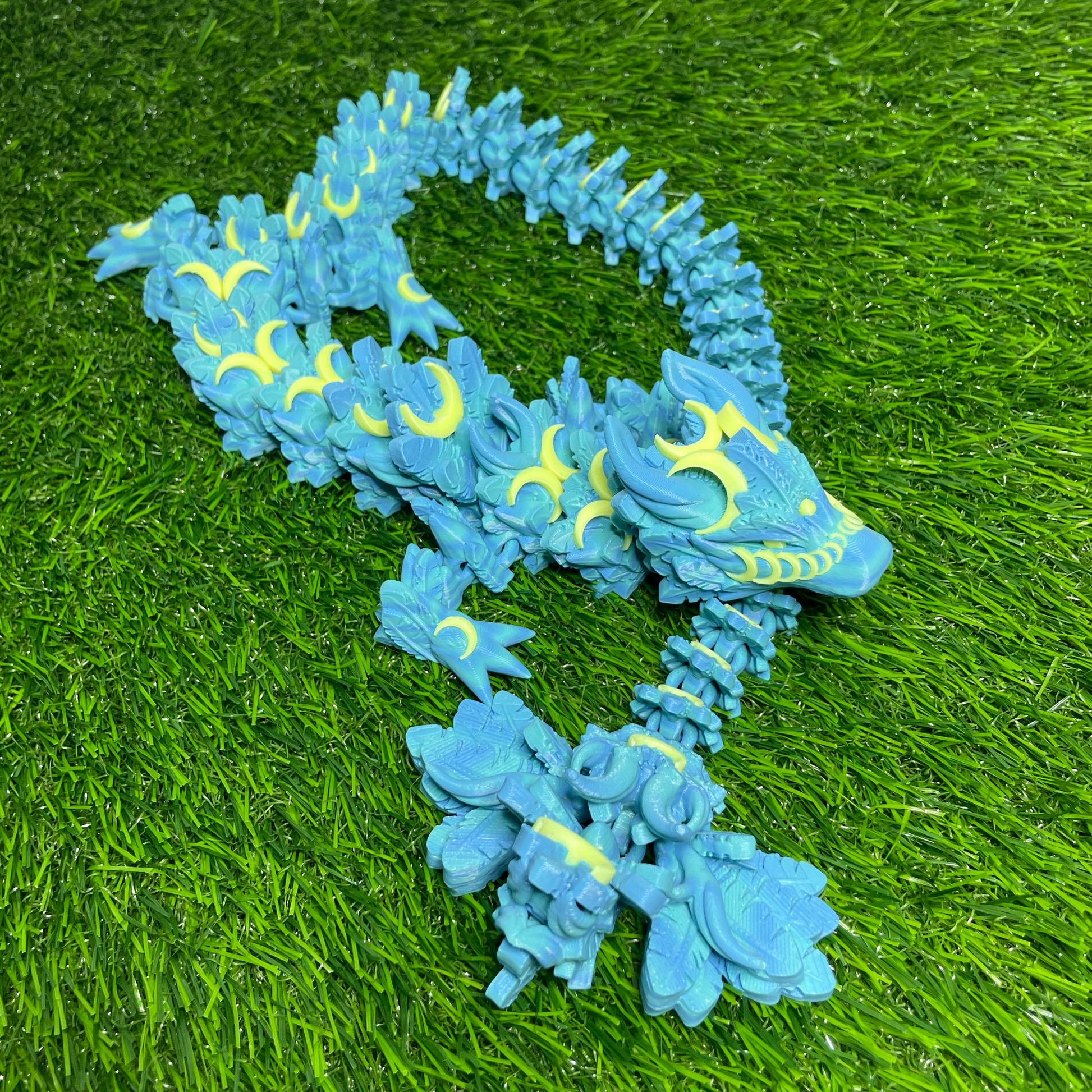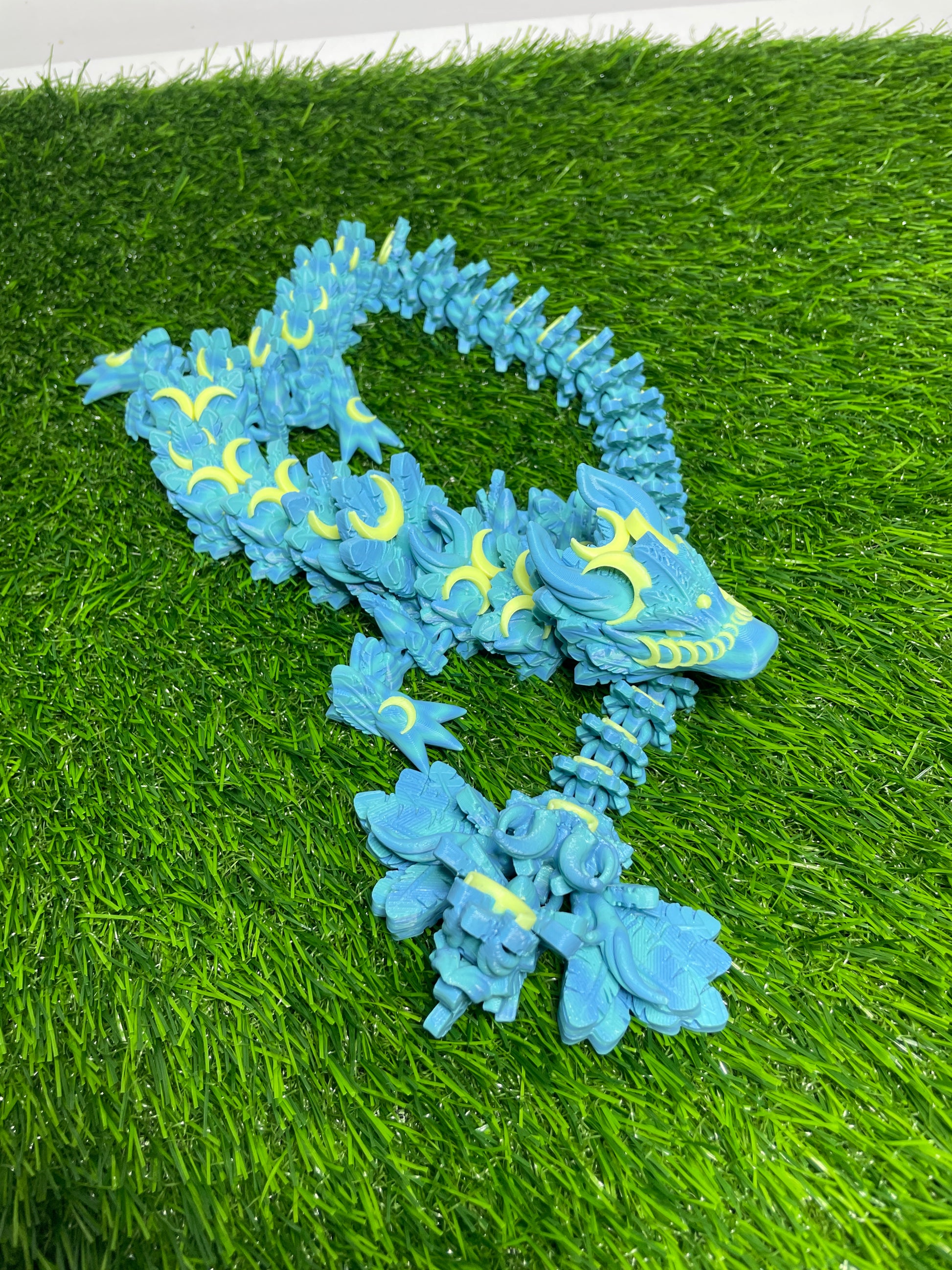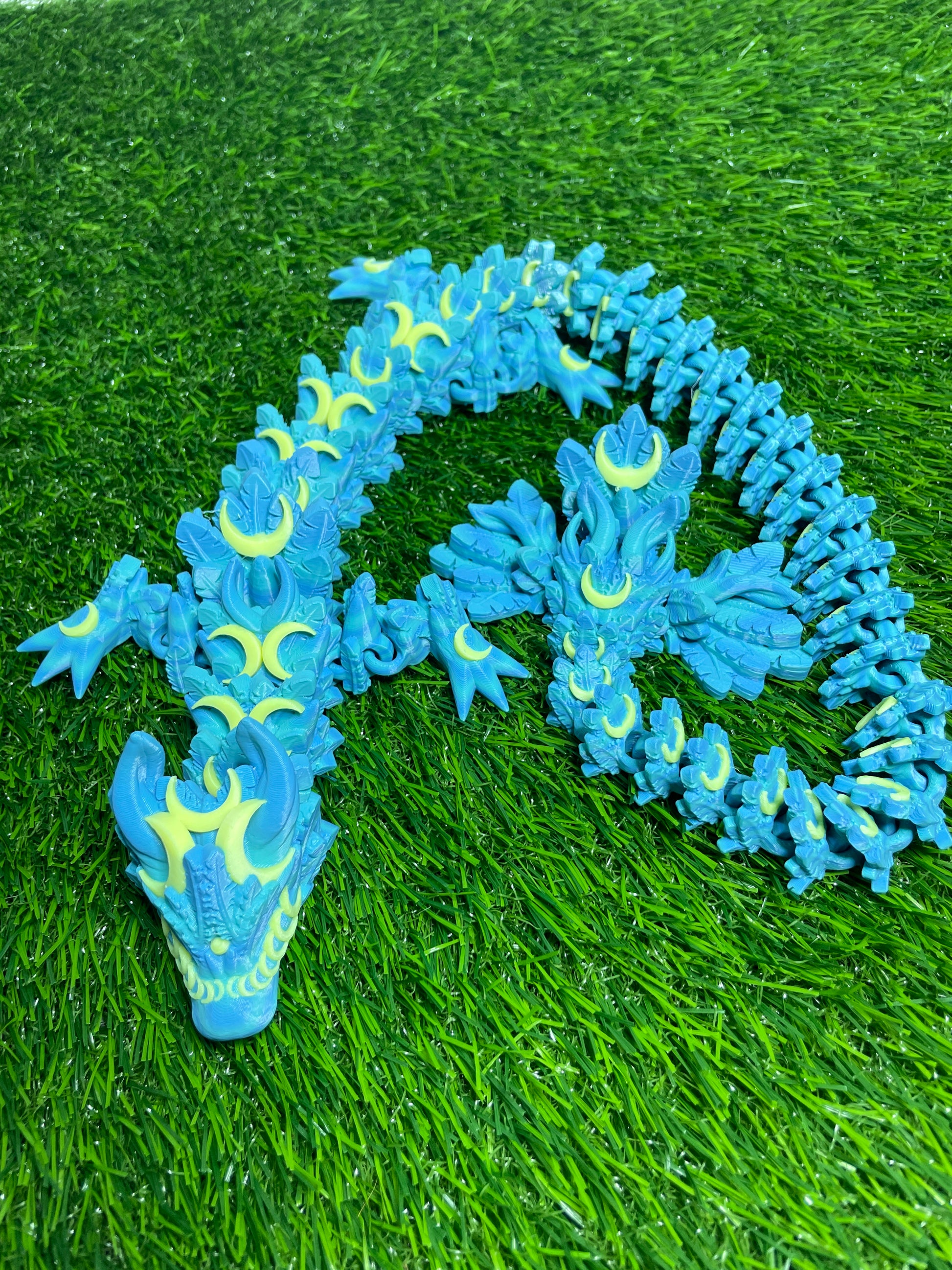 Behold! The Lunar Dragon, a masterpiece of craftsmanship proudly made in Virginia, THAT GLOWS (The yellow moons). Measuring at a substantial 26 inches long, this captivating creation is the epitome of charm and versatility, perfectly suited for desks or accent decorations. Our Unique and Superior Printing Techniques gives us the edge with some of the smoothest prints available.