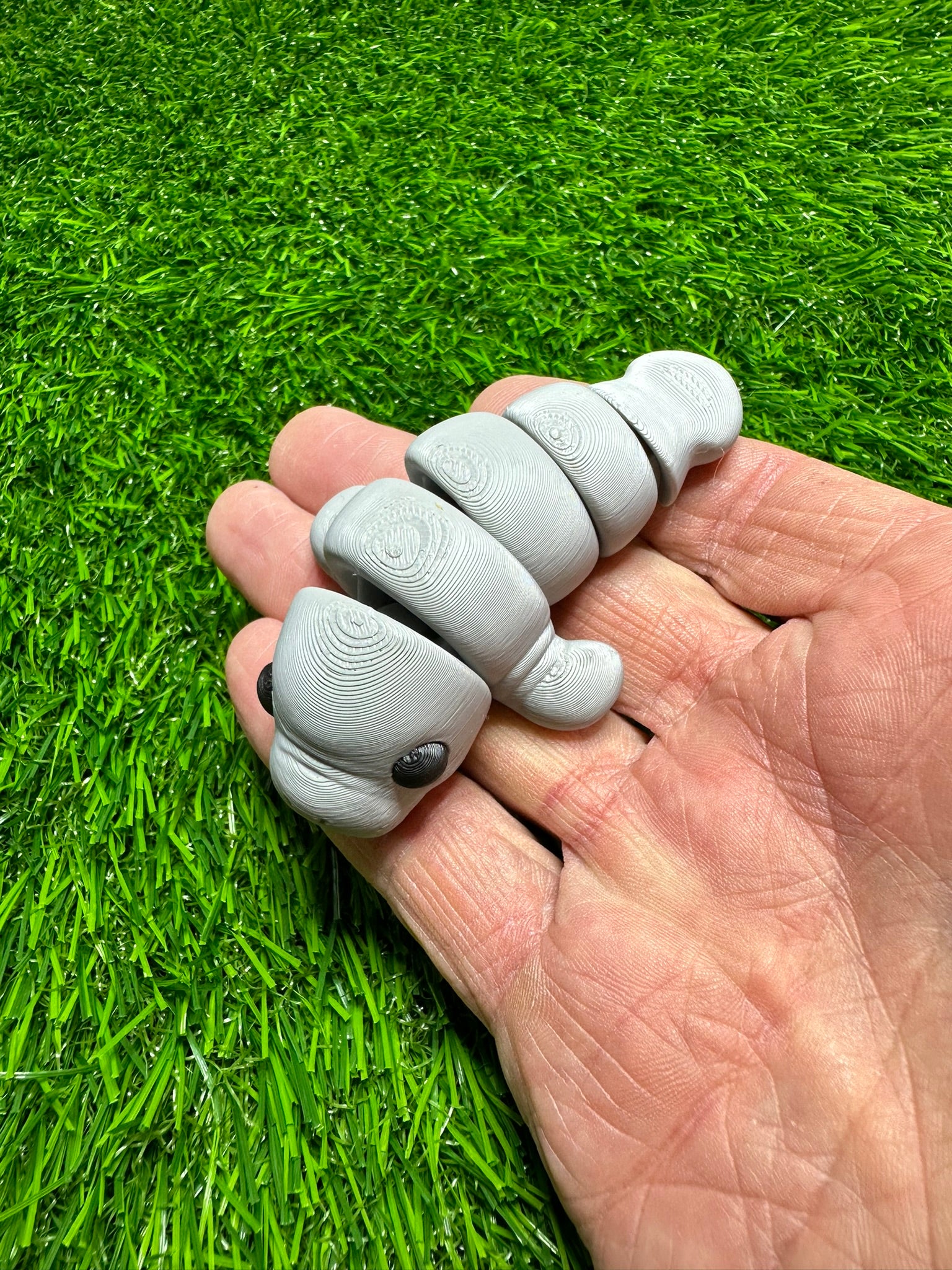 Articulating Manatee Fidget, a charming creation meticulously crafted through cutting-edge 3D printing technology right here in Virginia. Standing at a delightful 2.5 inches tall, this fidget toy is not just a playful companion but a testament to precision and durability.