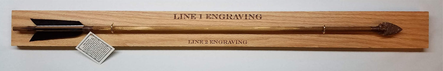 Introducing our exquisite Mounted Navajo Arrow Display Plaque—a truly unique piece designed to honor and showcase the craftsmanship of Navajo artists. Crafted from solid red oak, this 27-inch-long plaque embodies both elegance and durability. The warm, rich hues of the oak provide a stunning backdrop to enhance the beauty of the ceremonial arrow it proudly displays. Optional engraving allows you to personalize this masterpiece, making it a one-of-a-kind tribute or gift.