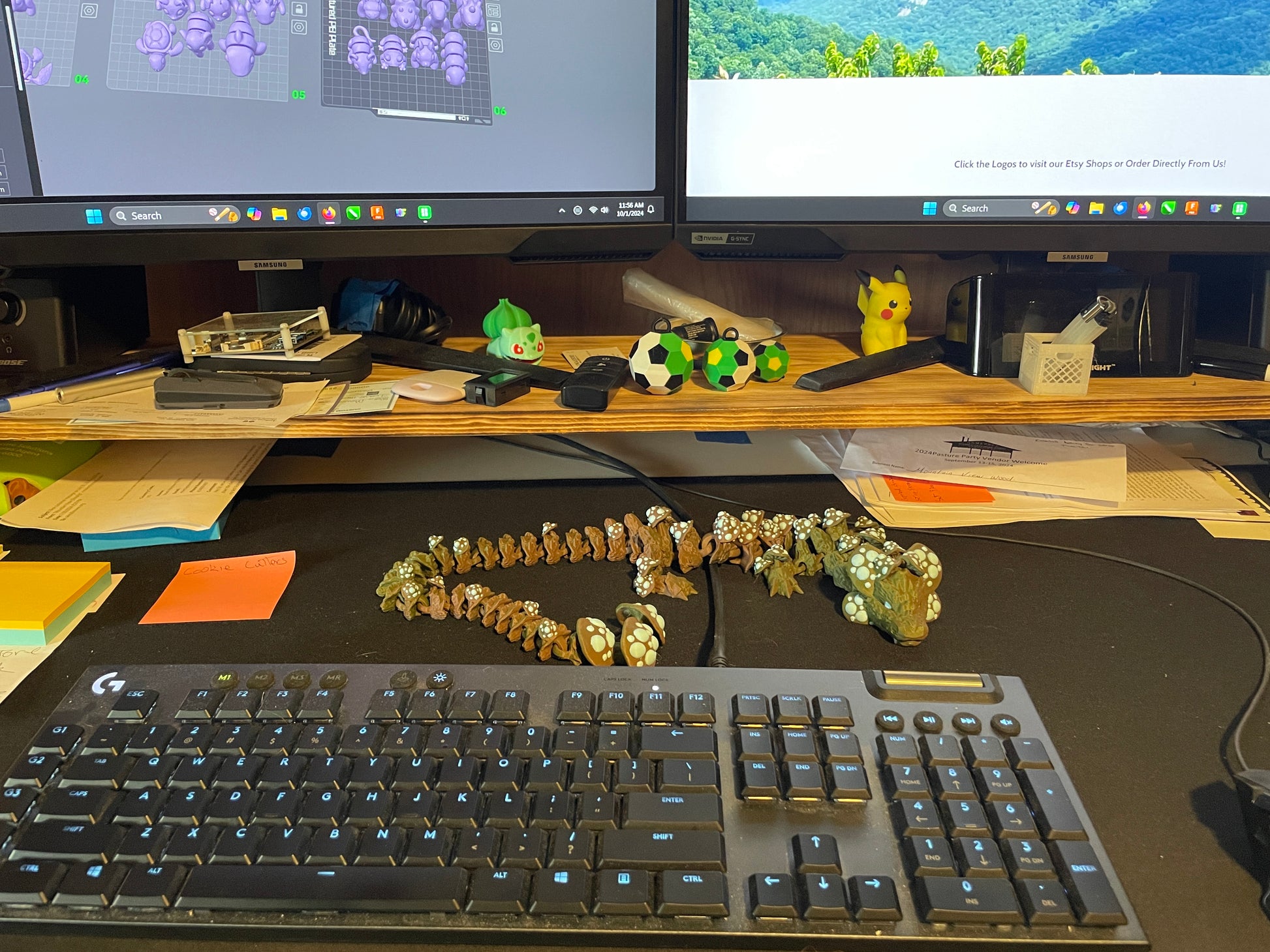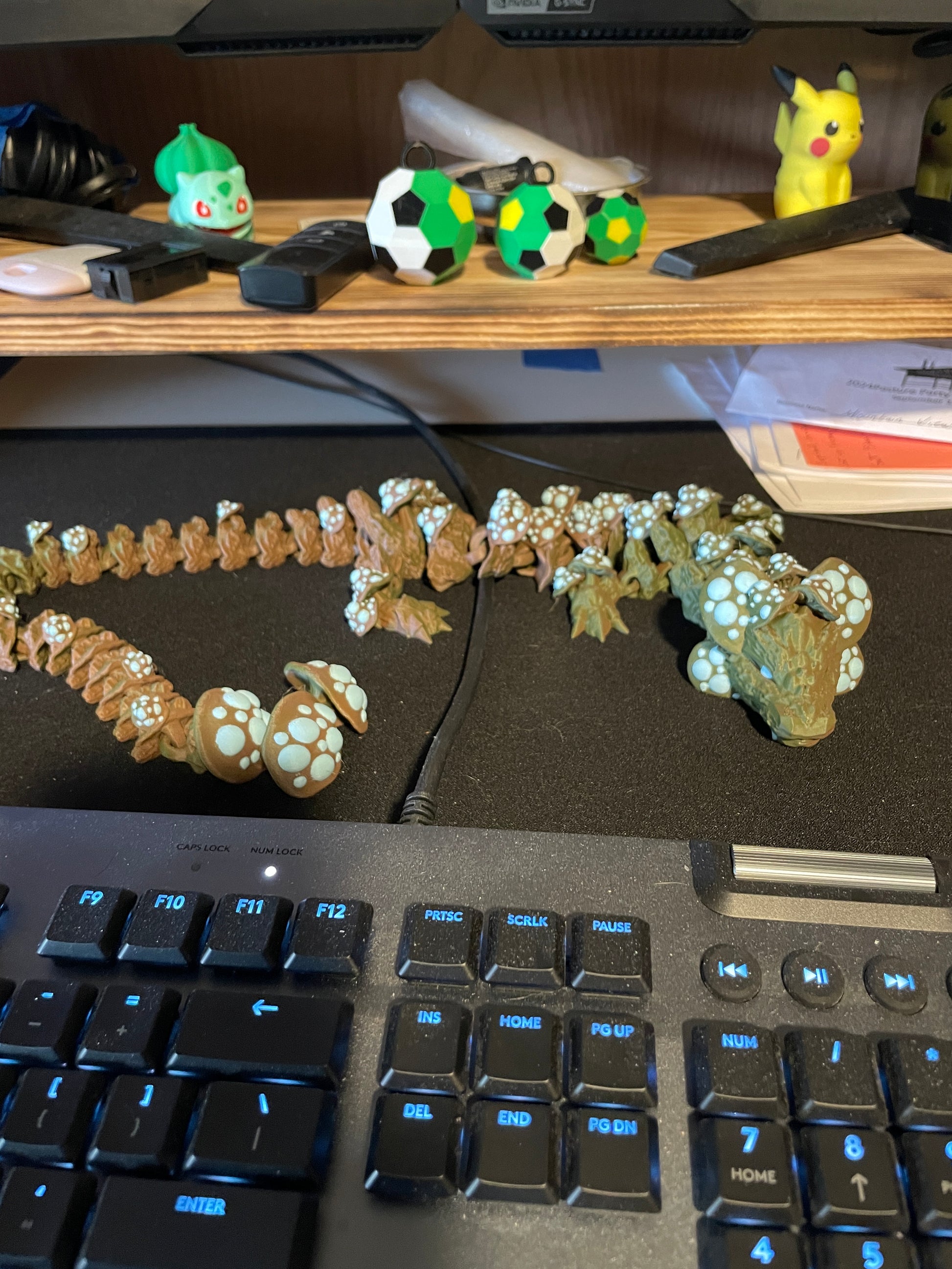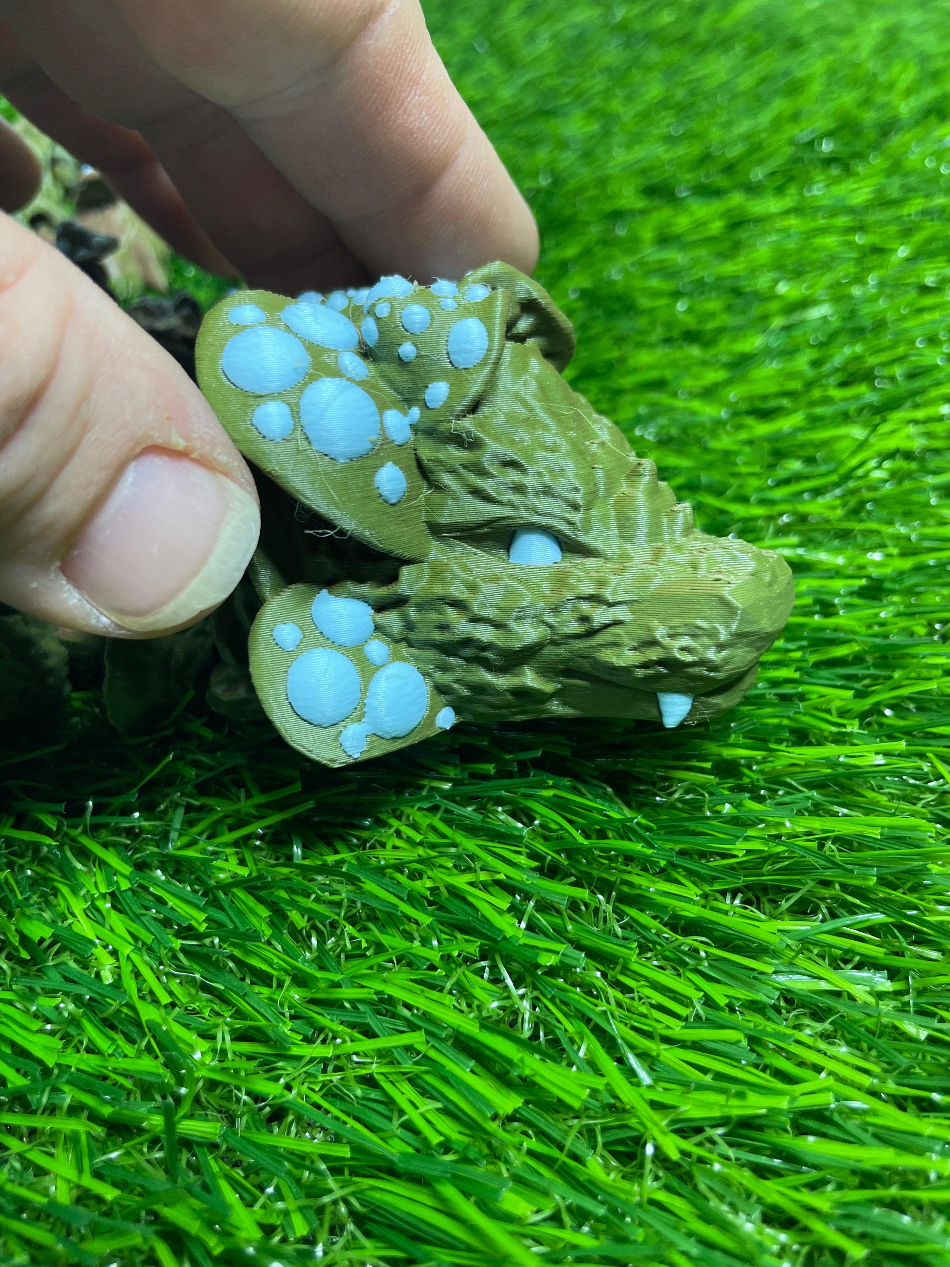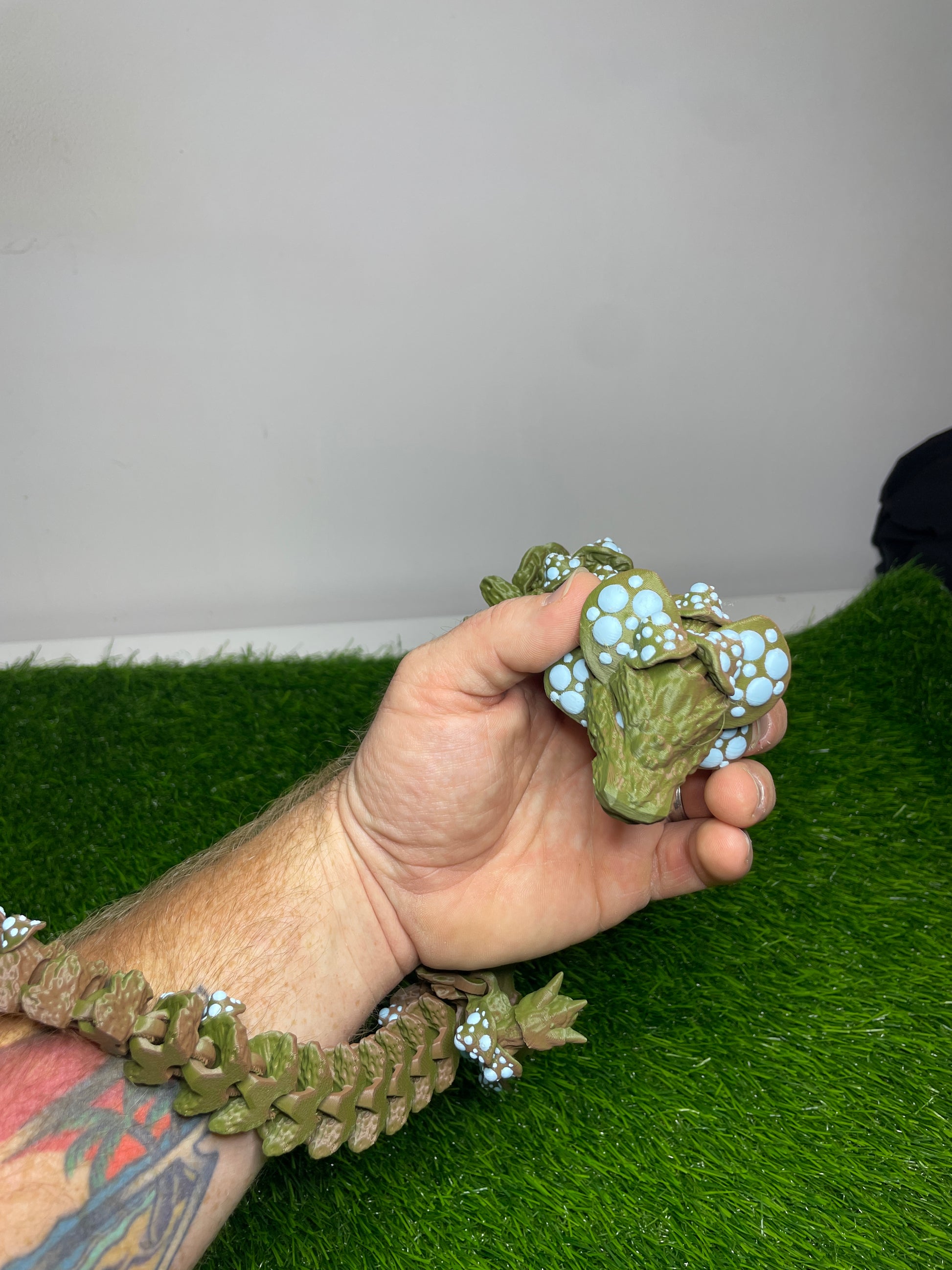 Behold! The Mushroom Dragon, a masterpiece of craftsmanship proudly made in Virginia. Measuring at a substantial 26 inches long, this captivating creation is the epitome of charm and versatility, perfectly suited for desks or accent decorations. Our Unique and Superior Printing Techniques gives us the edge with some of the smoothest prints available.