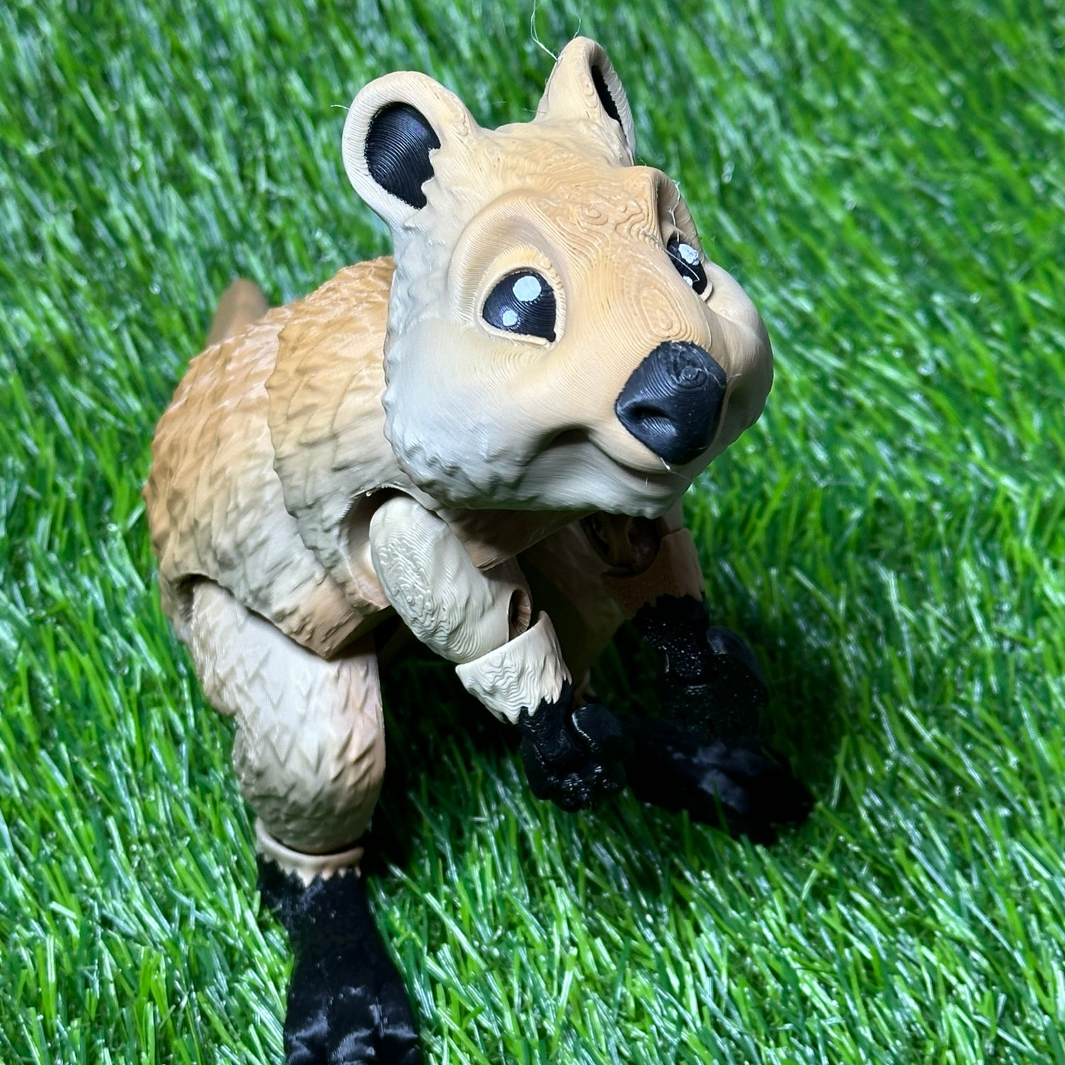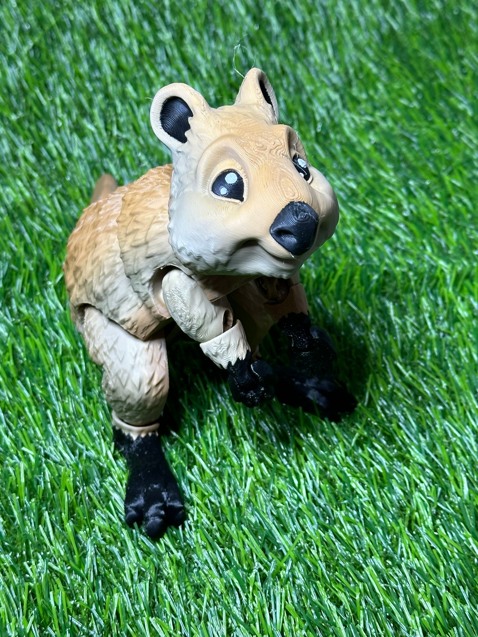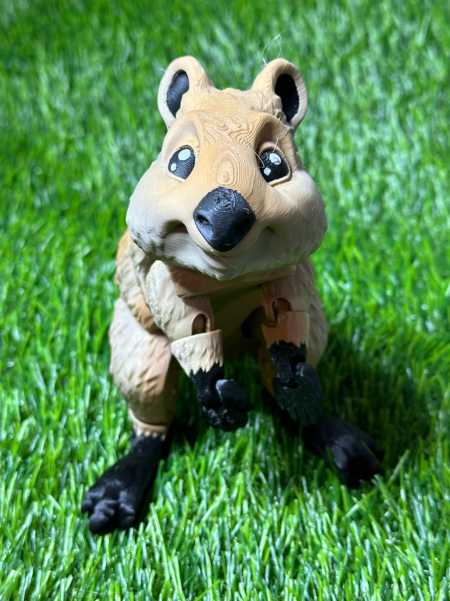 Introducing the Large 3D Printed Articulating Quokka , a masterpiece of craftsmanship proudly made in Virginia. Standing at a substantial 8.5 inches long and 4.5 inches tall, this captivating creation is the epitome of charm and versatility, perfectly suited for desks or accent decorations.