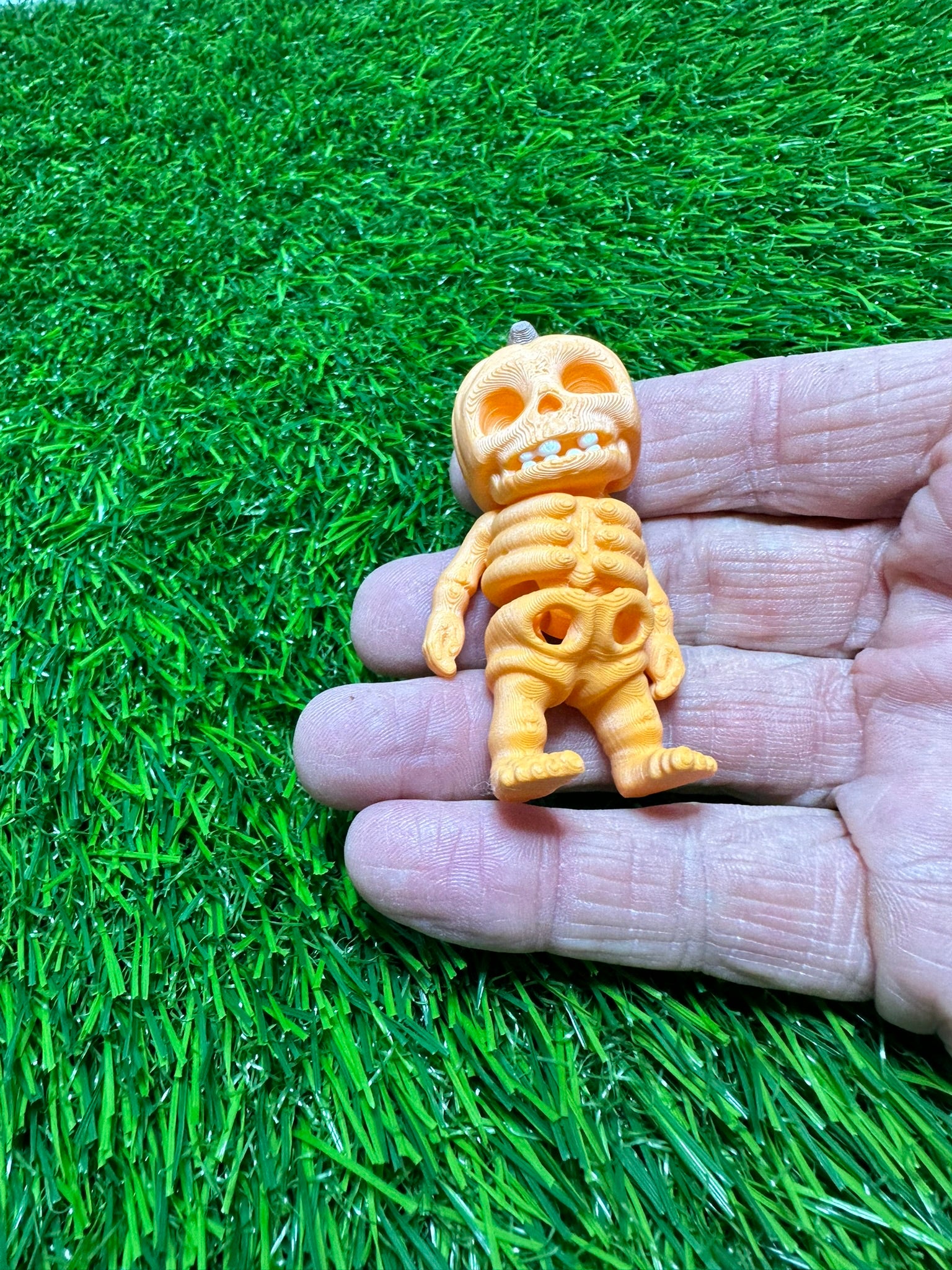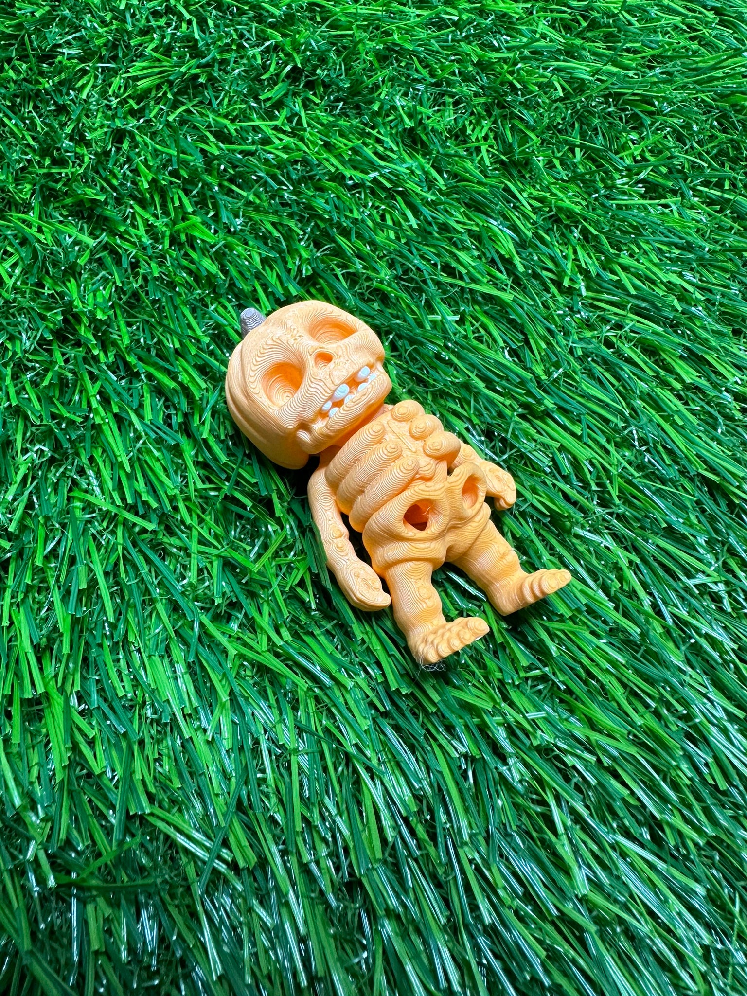 Articulating Pumpkin Skeleton Fidget, a charming creation meticulously crafted through cutting-edge 3D printing technology right here in Virginia. Standing at a delightful 2.5 inches tall, this fidget toy is not just a playful companion but a testament to precision and durability.