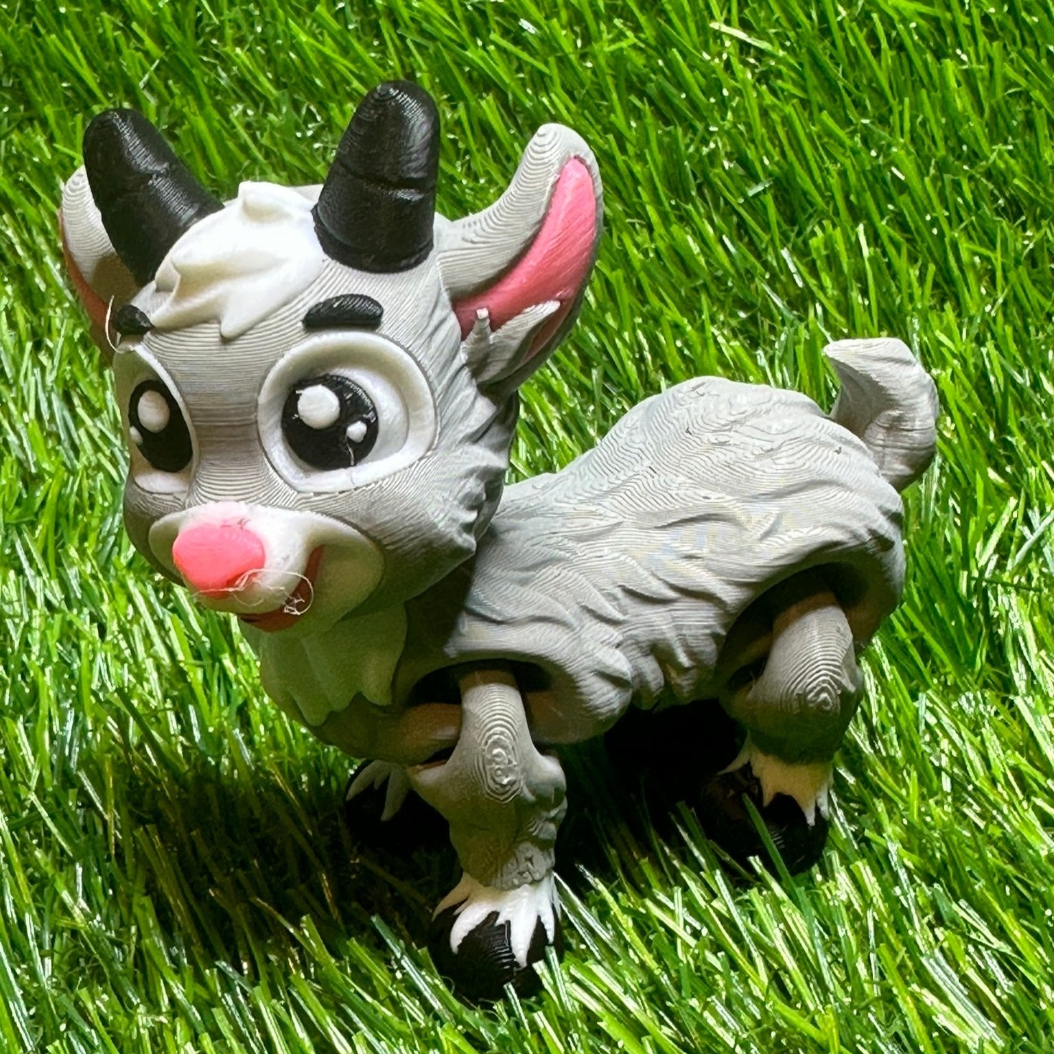 Articulating Goat Fidget Animal, a charming creation meticulously crafted through cutting-edge 3D printing technology right here in Virginia. Measuring at a delightful 4.25 inches long, this fidget toy is not just a playful companion but a testament to precision and durability.