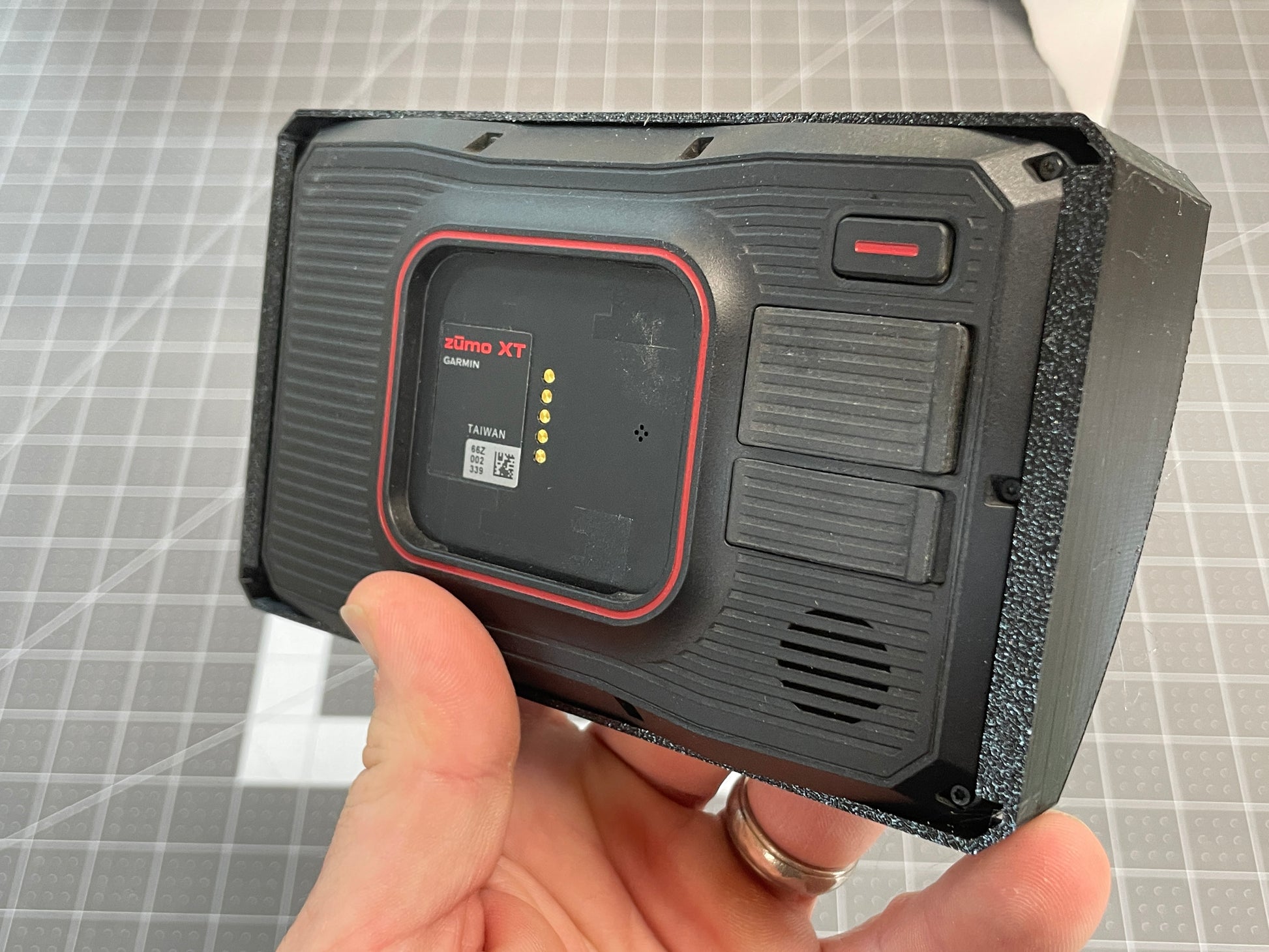 Designed to fit snugly around your Garmin Zumo XT without hindering your ability to attach the GPS to it’s mount or reach the release button. Printed in PETG to withstand direct sunlight and outdoor temperatures. These were custom designed by us, and are able to be customized with logo, name or whatever you may need. Available in 3 colors: Black, Green and Blue.